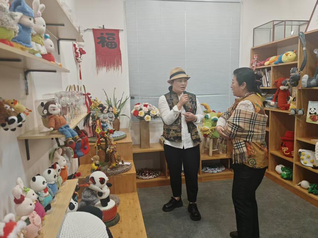 调研组一行实地观摩了绒线编织手工艺品制作现场,参观精品、奖品展示区,询问了解工坊运营模式、取得的经济及社会成效等。工坊负责人冯燕霞就原料进口、产品销路、培训残疾妇女、带动残疾妇女就业增收等情况,一一作了详细介绍。编织坊以传承振兴非遗绒线编织工艺为核心追求,以带动残疾妇女增收致富为价值取向,通过与现代工艺设计融合,创新打造出兼具文化内涵与市场价值的非遗产品。目前,编织坊已累计培训残疾妇女300余人,带动50余名残疾妇女实现就业增收,4名优秀学员已成长为工艺导师,走上了“传帮带”良性发展之路。