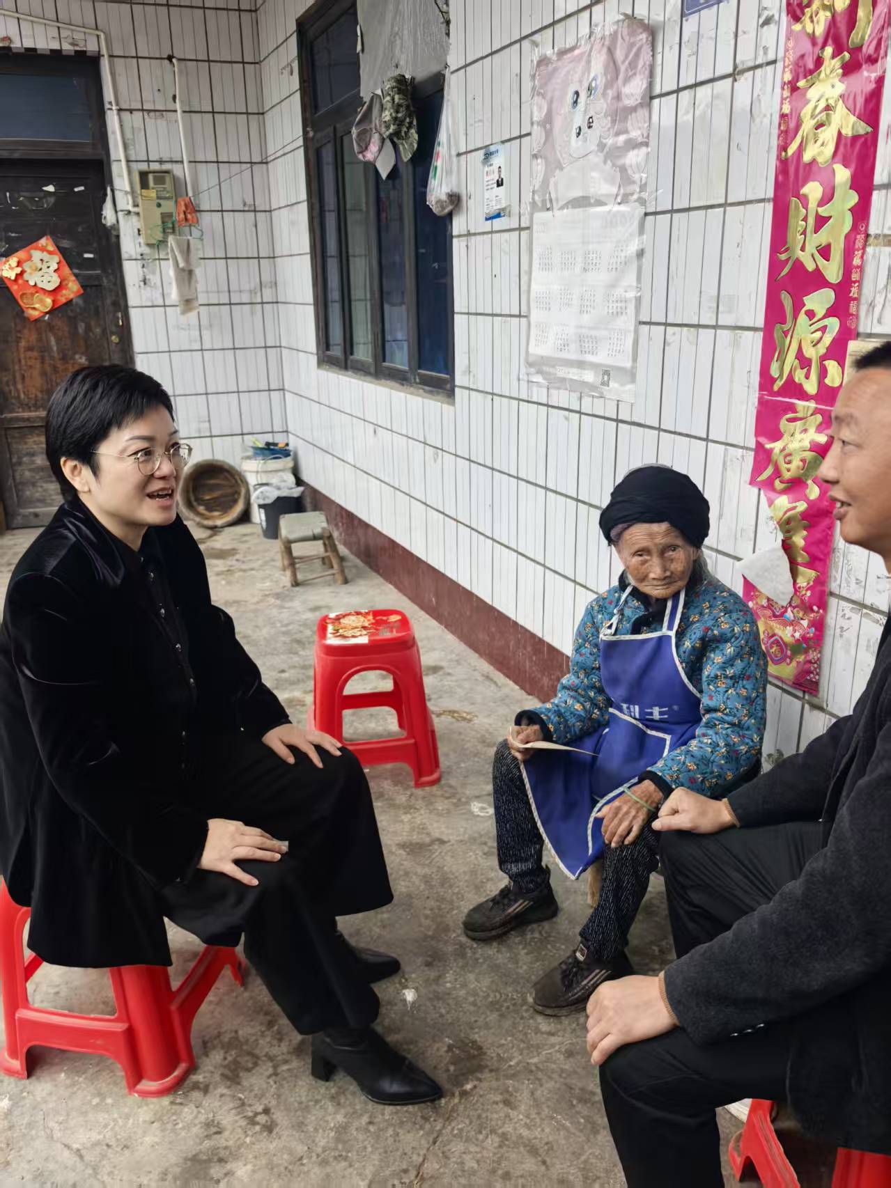 在百岁残疾老人陈卉英家中,肖琳与老人促膝谈心,关切地询问老人的饮食起居和身体状况。陈卉英老人虽已满104岁高龄,但身体还很硬朗,日常生活能够完全自理。肖琳称赞百岁老人是家庭的福气,其健康长寿是儿孙孝顺、家庭和睦与社会进步的美好体现,叮嘱老人要继续保持乐观心态,保重身体,安享幸福晚年。要求县残联、乡镇及村社区干部要及时帮助解决实际困难,让老年人切实感受到党和政府的关怀。