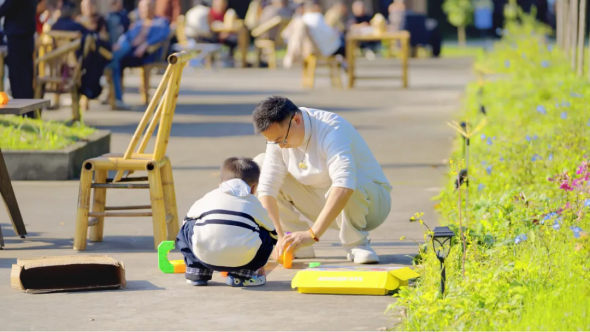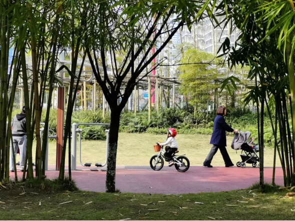 孩子们在游乐设施嬉戏 老人在亭子下棋聊天 亲子活动融入日常生活 这里就像一个开放的社区客厅 承载着邻里间的温情互动