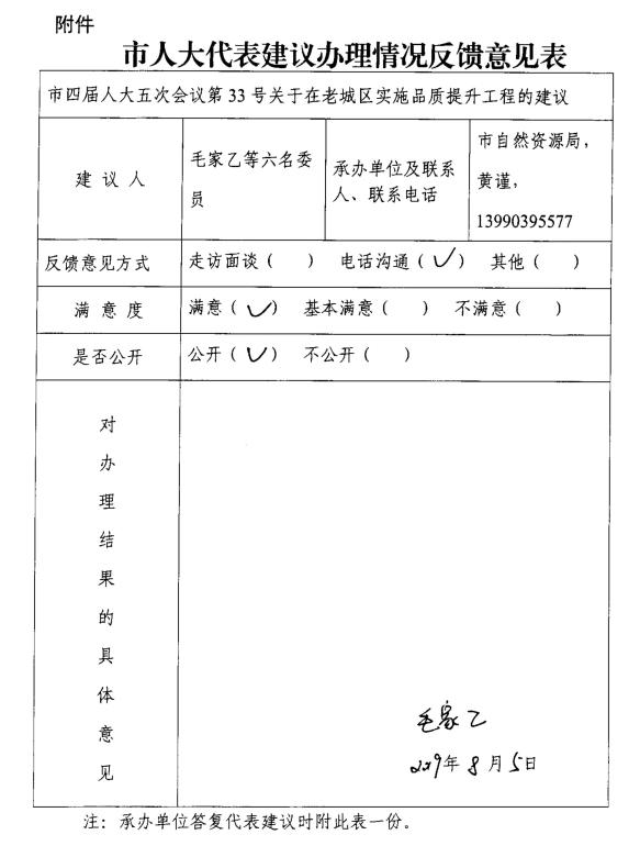 附件:市人大代表建议办理情况反馈意见表
