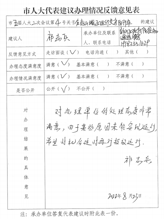 你提出的《关于在彭山城区运行共享自行车的建议》(第4号建议)收悉。现答复如下: