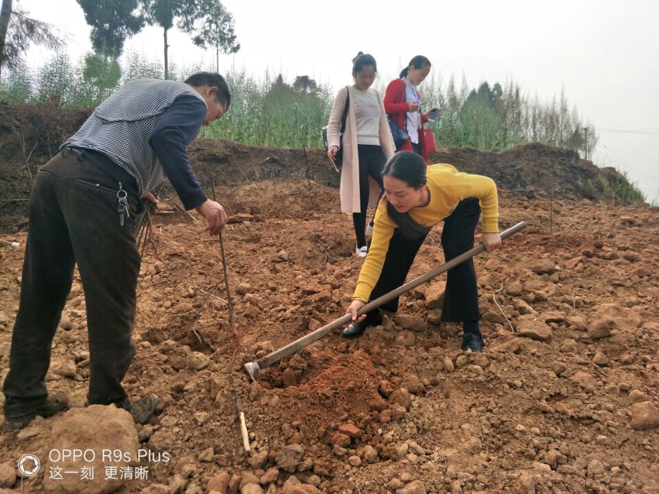 扶贫移民局党员干部纷纷撸起袖子,拿起铁锹,加入到植树的队伍中,两人或三人一组默契配合,挖坑、放苗、填土、压实、围土,一派热火朝天。此次,共为联系村送来了1000余株柑橘树苗和李子树苗。