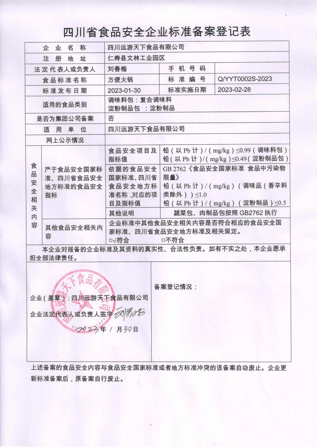 四川远游天下食品有限公司-方便火锅(公示截止期2023.03.02)