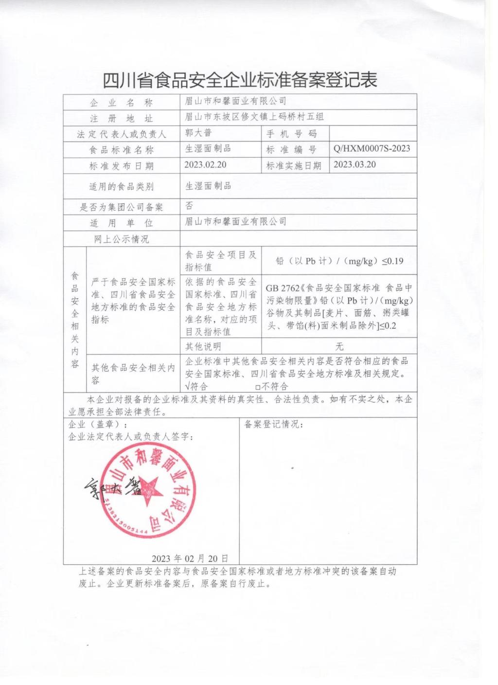 眉山市和馨面业有限公司-生湿面制品(公示截止期2023.03.27)