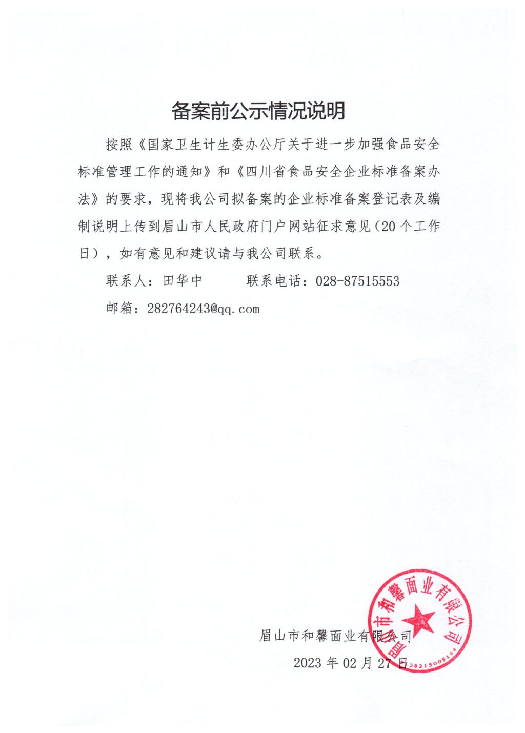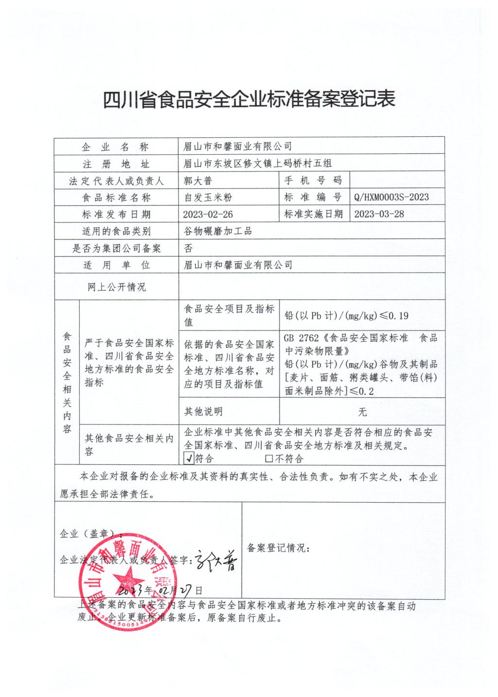 眉山市和馨面业有限公司-自发玉米粉(公示截止期2023.03.27)
