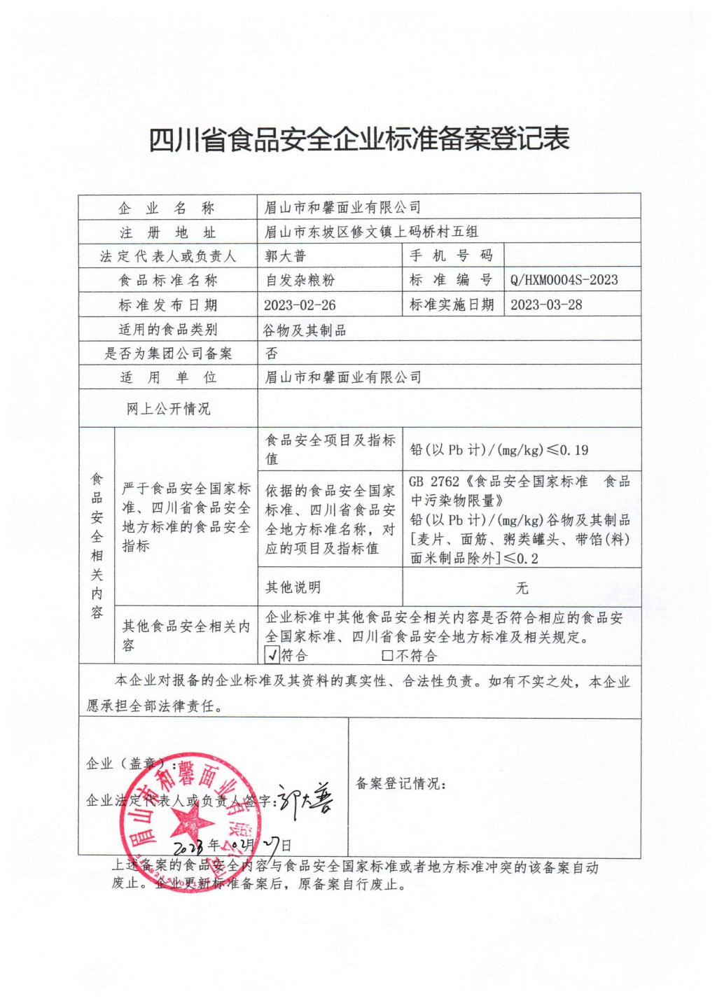 眉山市和馨面业有限公司-自发杂粮粉(公示截止期2023.03.27)