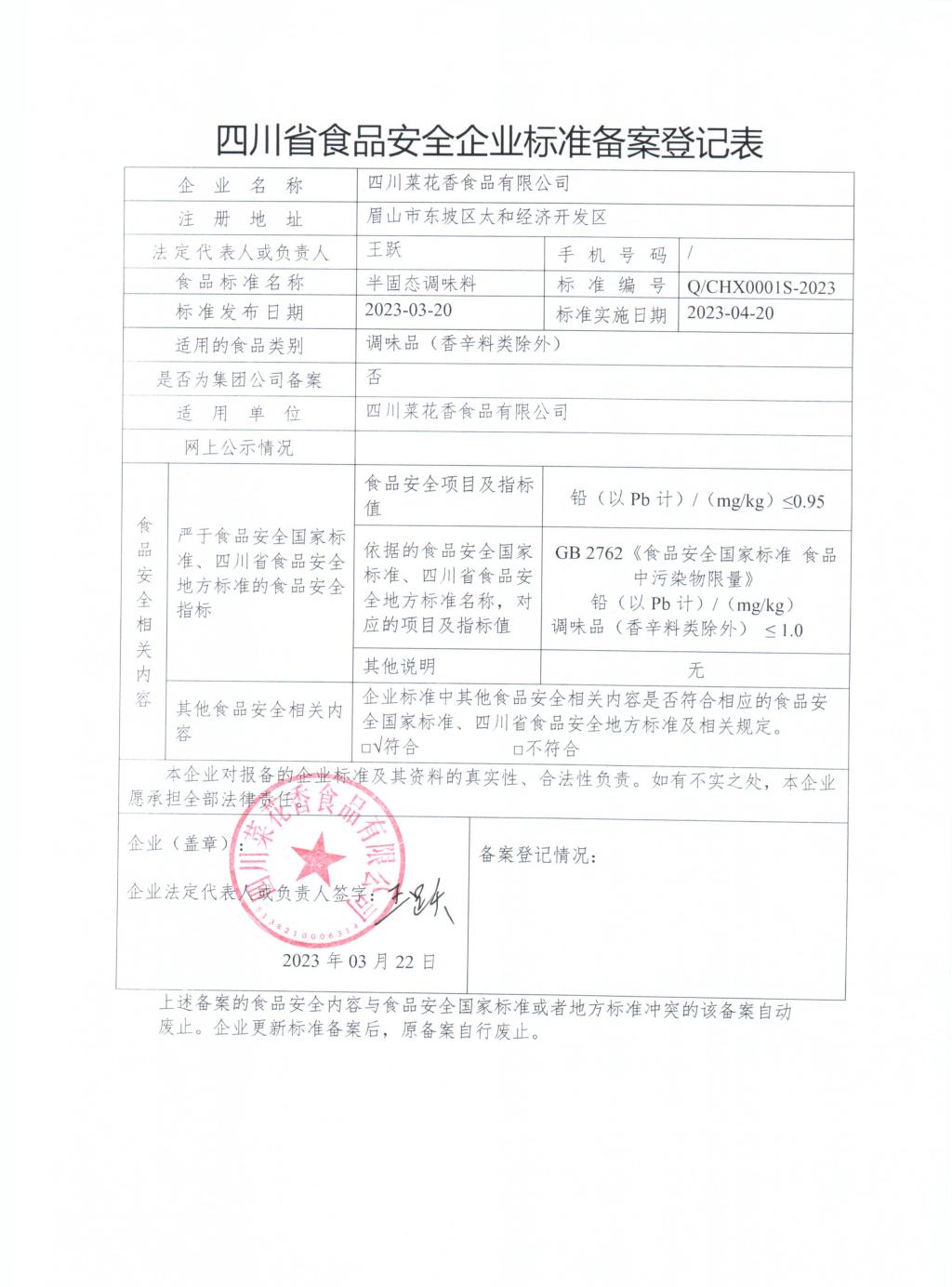 四川菜花香食品有限公司-半固态调味料(公示截止期2023.04.26)