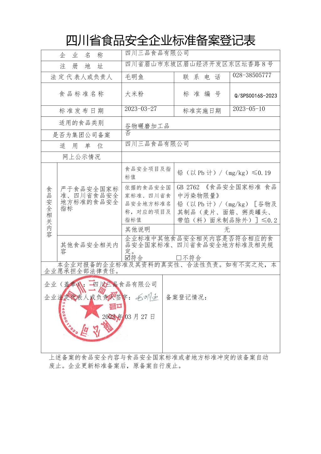 四川三品食品有限公司 -大米粉(公示截止期2023.04.26)