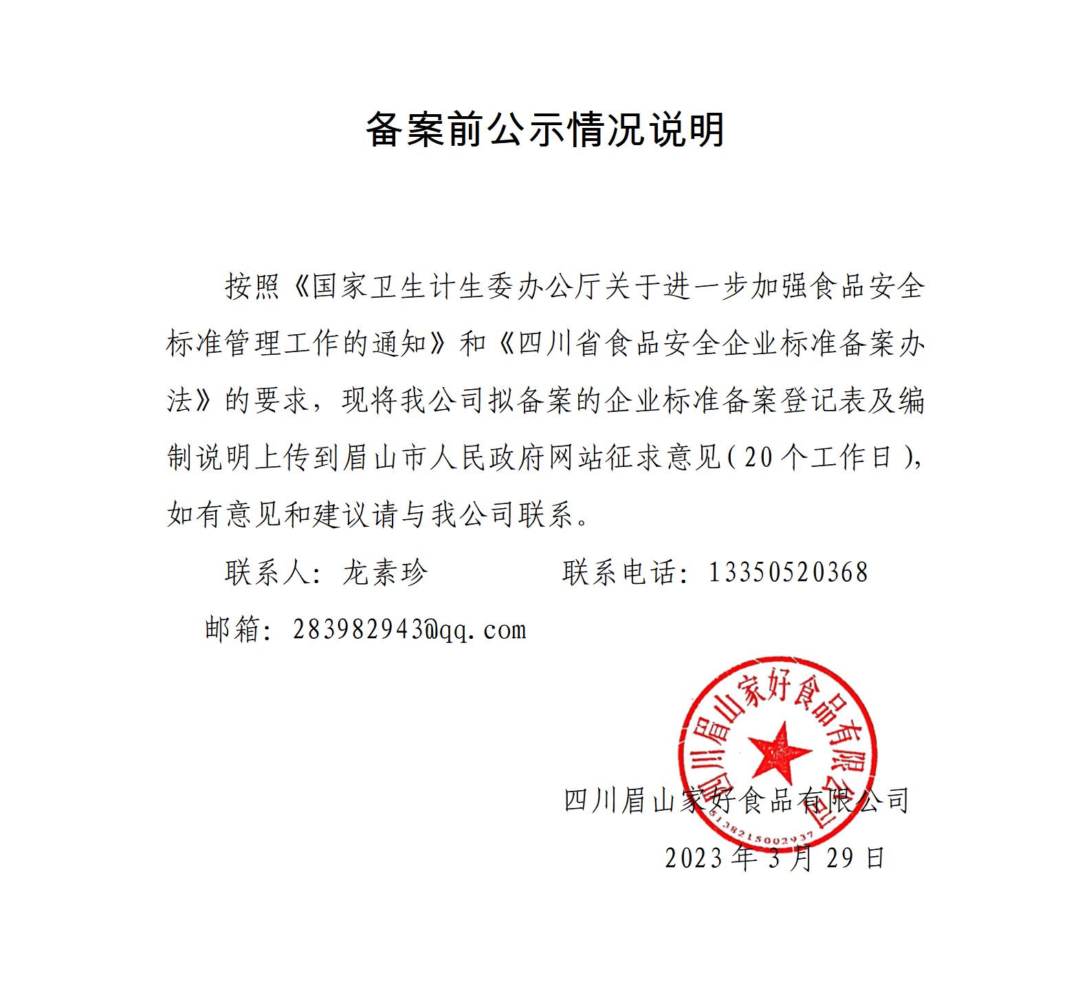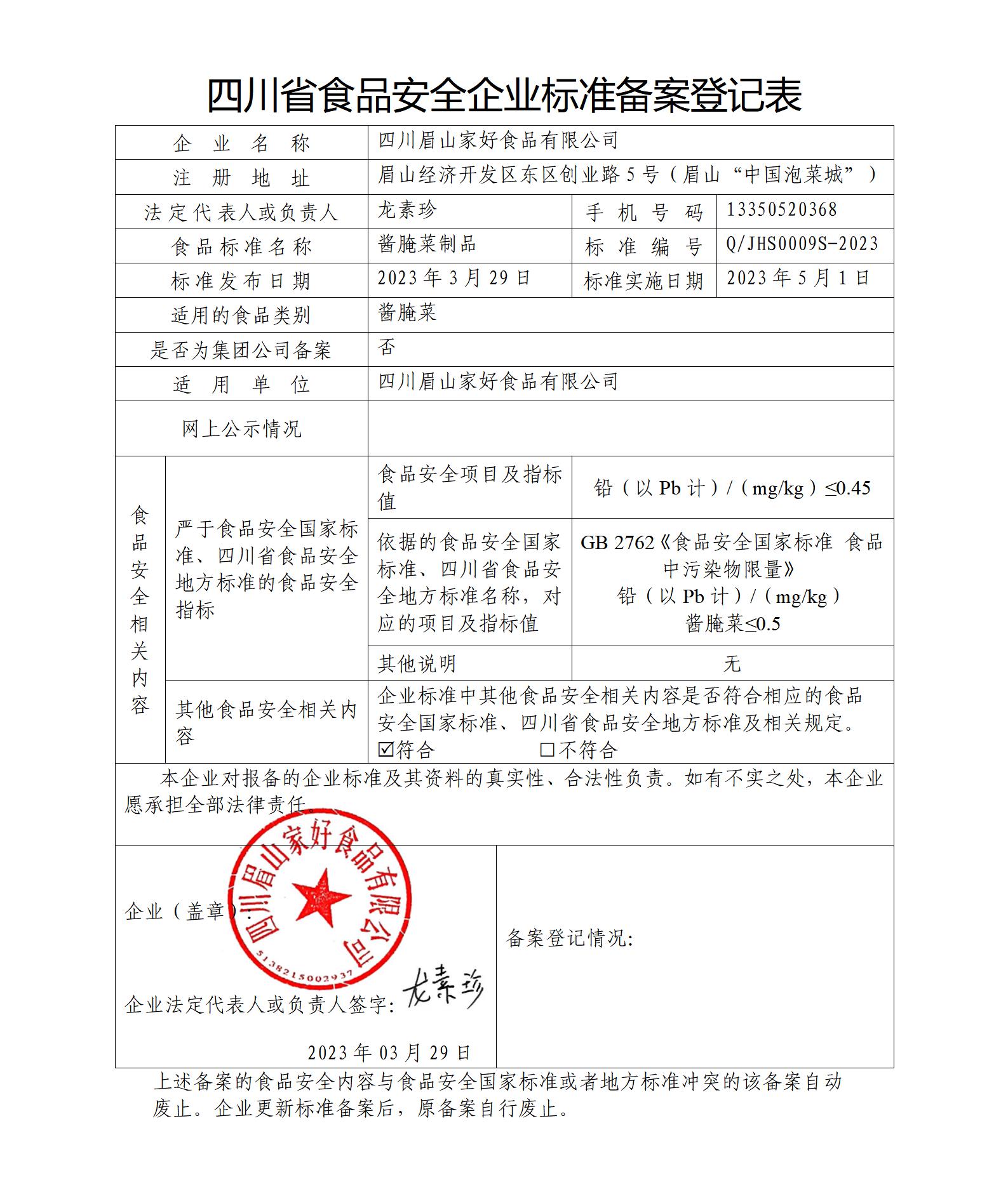 四川眉山家好食品有限公司-酱腌菜制品(公示截止期2023.05.08)