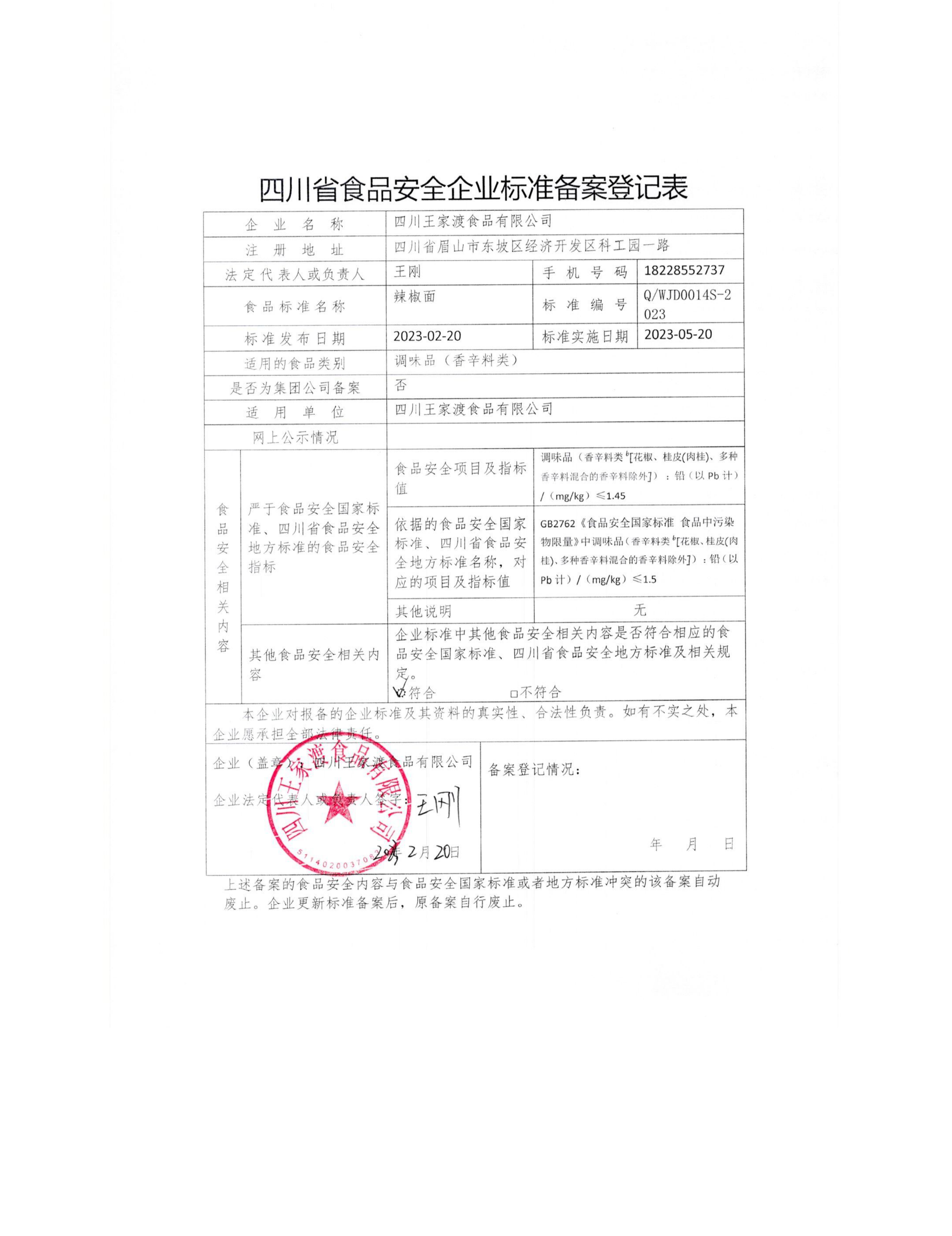 四川王家渡食品有限公司-辣椒面(公示截止期2023.05.10)