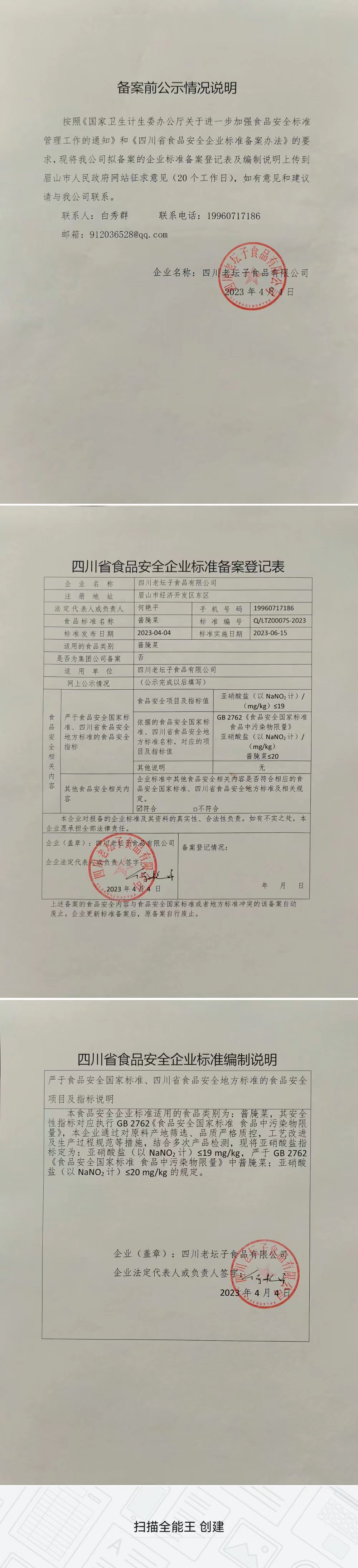 四川老坛子食品有限公司-酱腌菜(公示截止期2023.05.11)