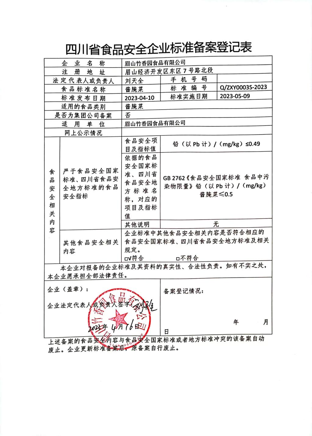 眉山竹香园食品有限公司-酱腌菜(公示截止期2023.5.25)