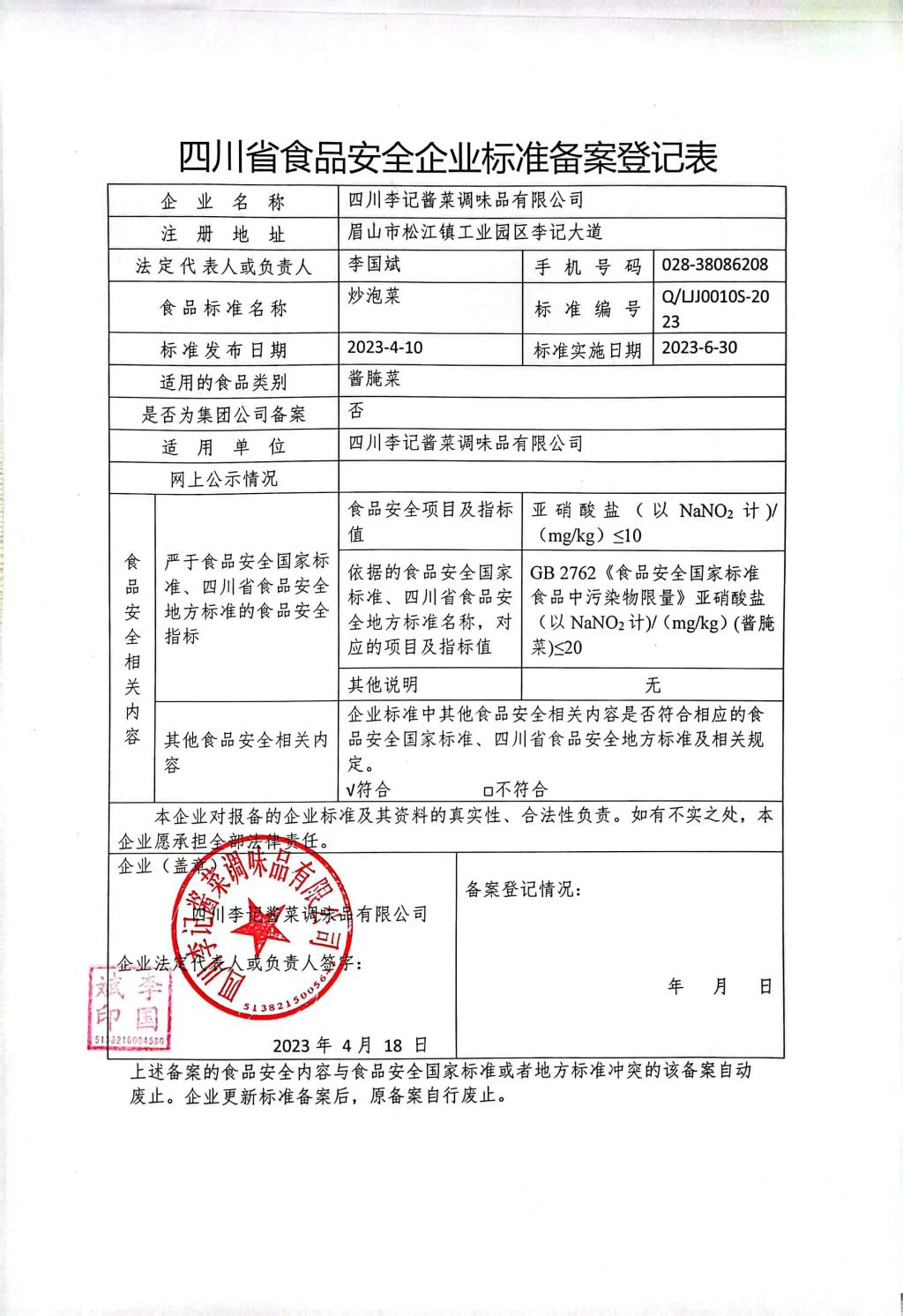 四川李记酱菜调味品有限公司-炒泡菜(公示截止期2023.5.25)