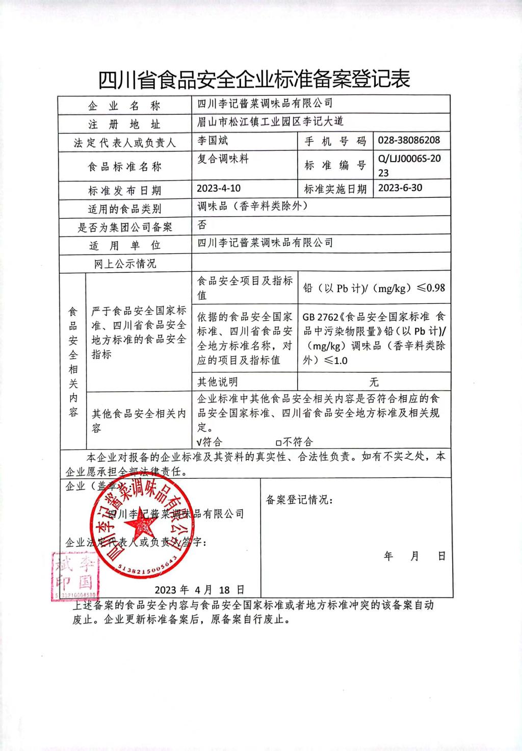 四川李记酱菜调味品有限公司-复合调味料(公示截止期2023.5.25)