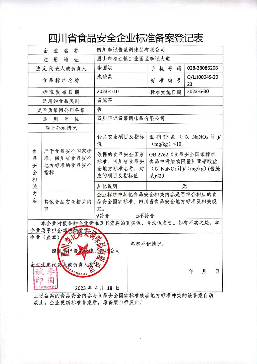 四川李记酱菜调味品有限公司-泡酸菜(公示截止期2023.5.25)