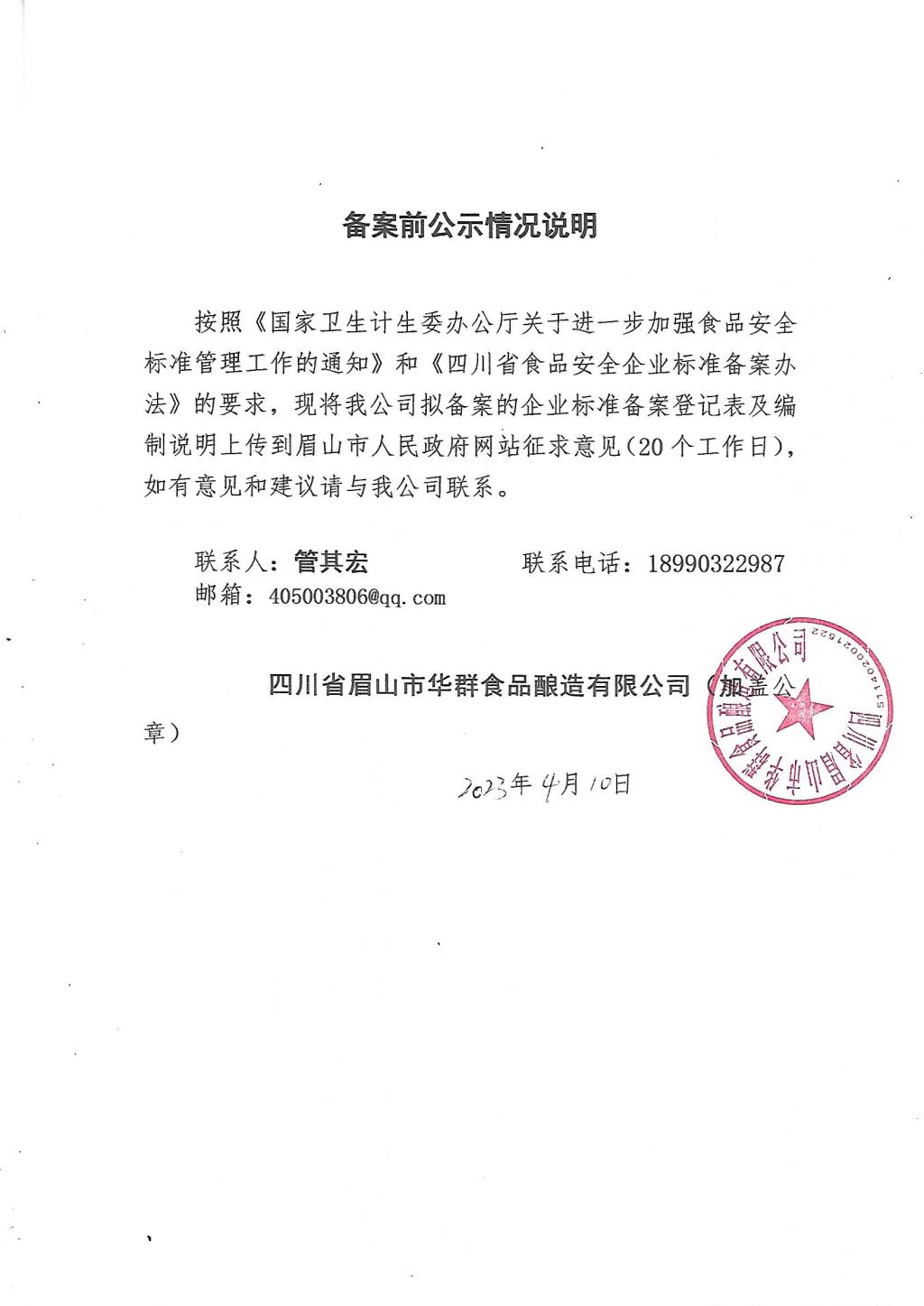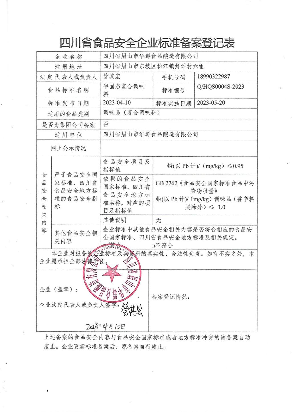 四川省眉山市华群食品酿造有限公司-半固态复合调味料(公示截止期2023.5.25)