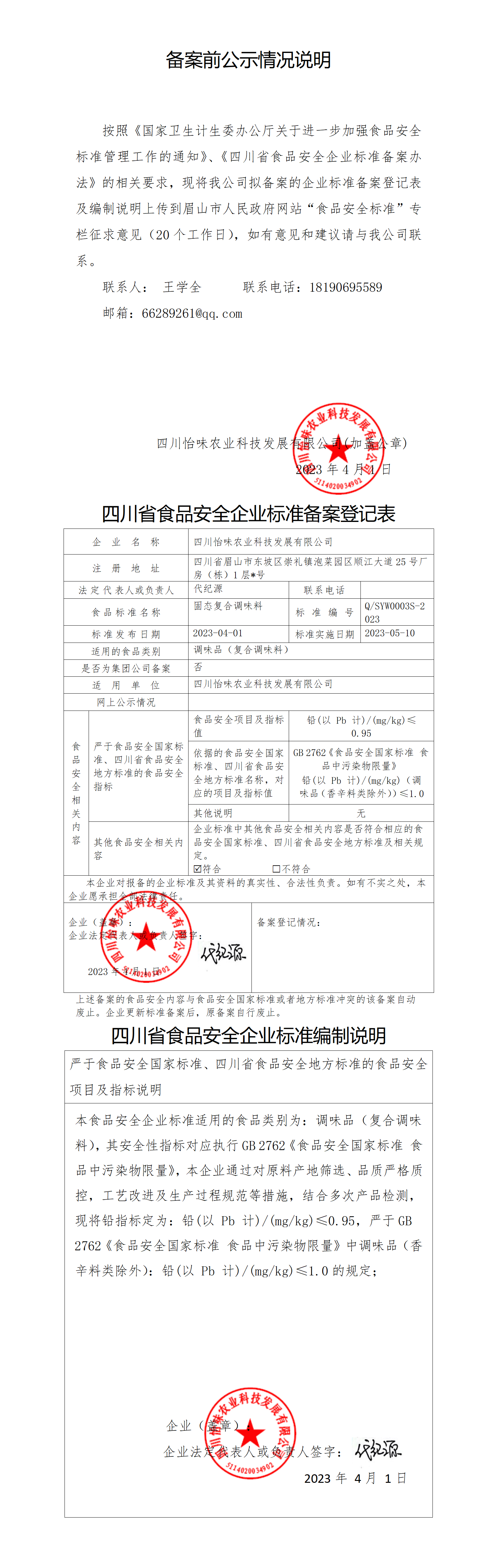 四川怡味农业科技发展有限公司-固态复合调味料(公示截止期2023.5.25)