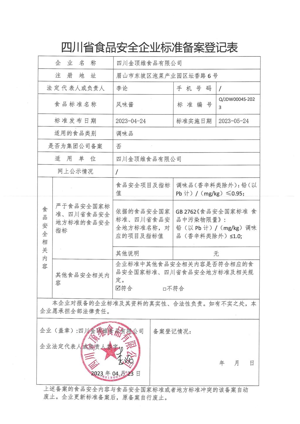 四川金顶维食品有限公司-风味酱(公示截止期2023.5.30)