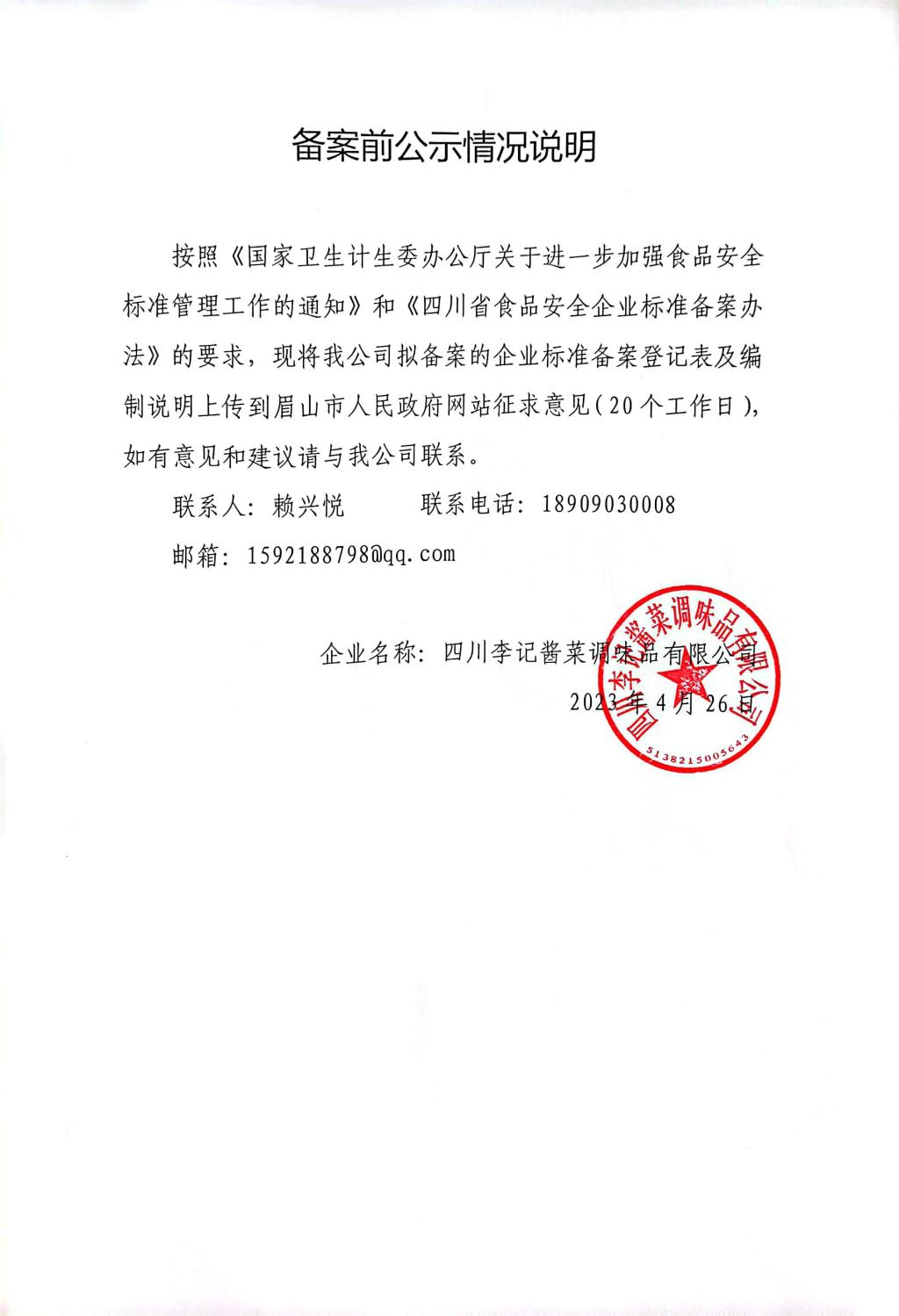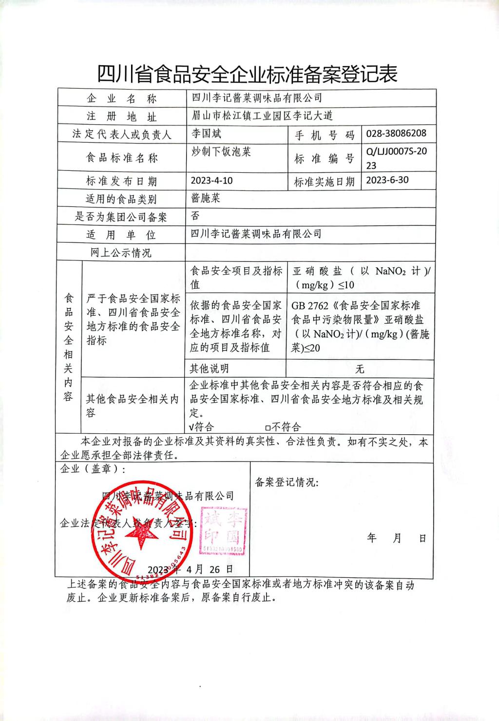 四川李记酱菜调味品有限公司-炒制下饭泡菜(公示截止期2023.5.30)