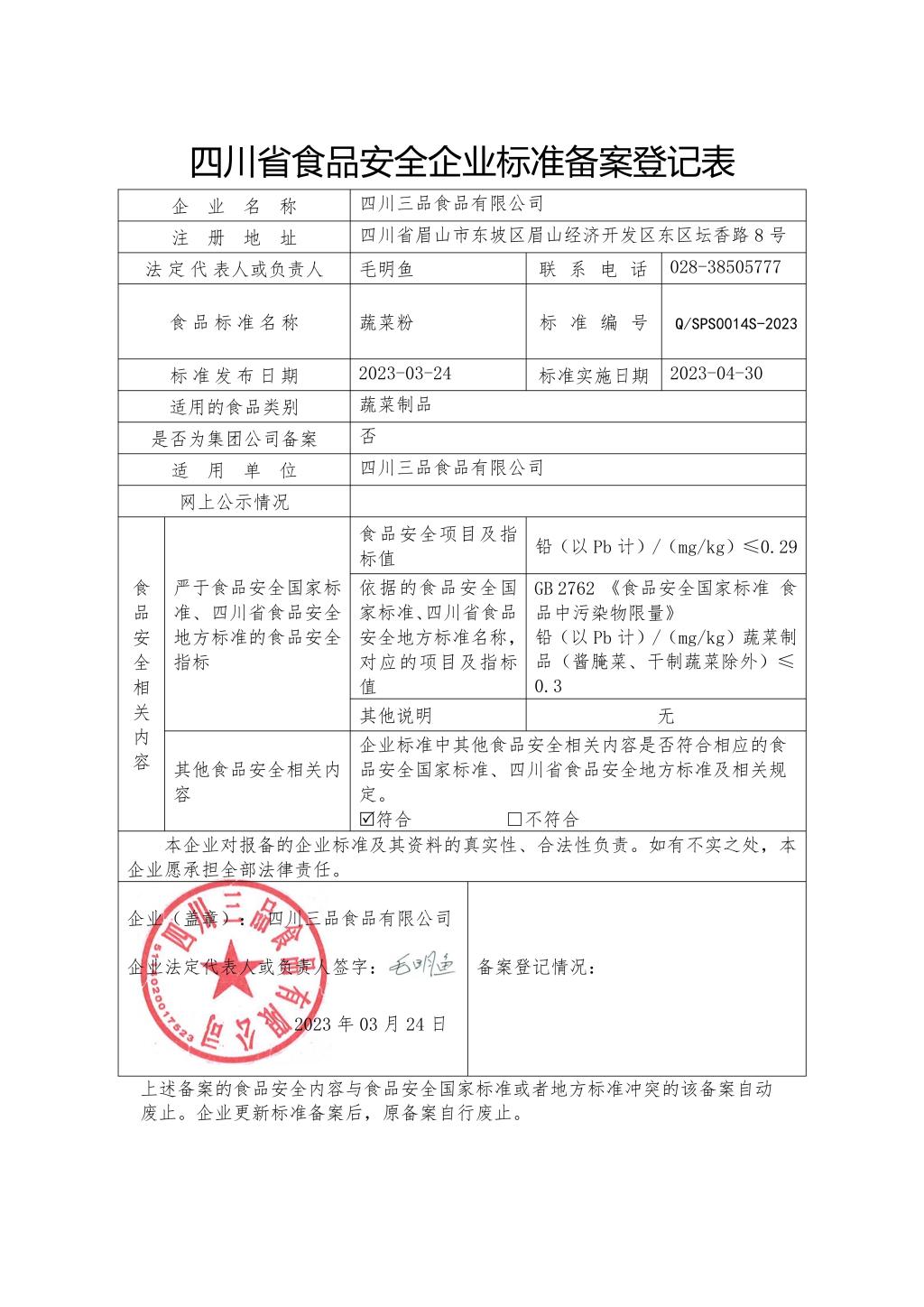 四川三品食品有限公司-蔬菜粉(公示截止期2023.5.30)