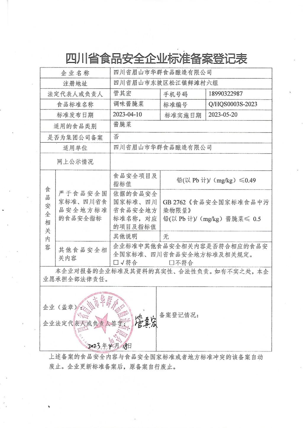 四川省眉山市华群食品酿造有限公司-调味酱腌菜(公示截止期2023.5.30)