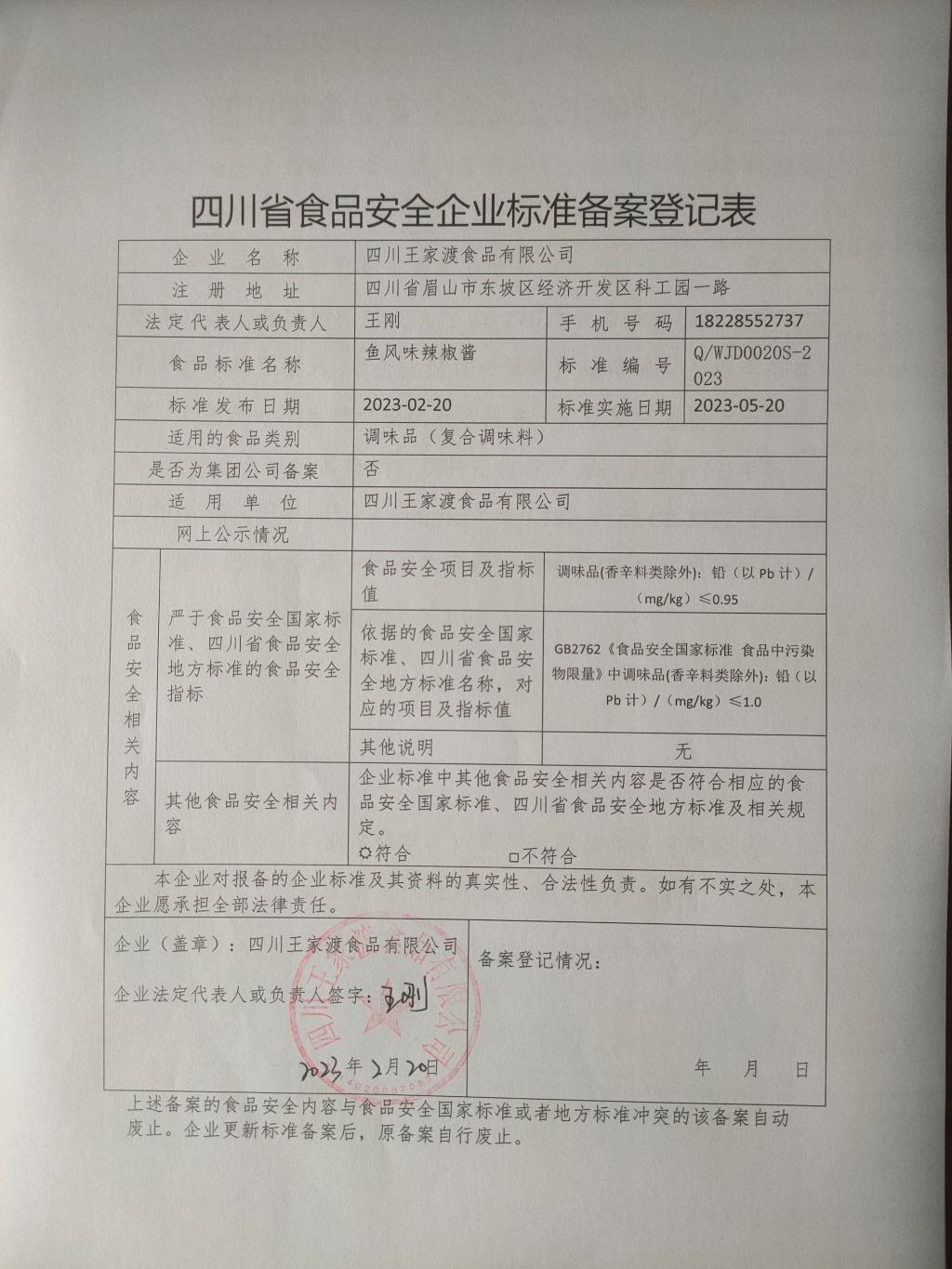 四川王家渡食品有限公司-鱼风味辣椒酱(公示截止期2023.5.30)