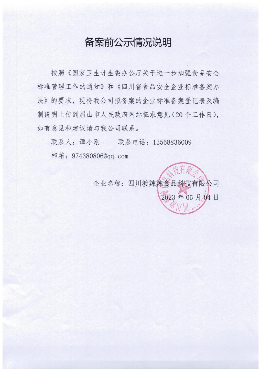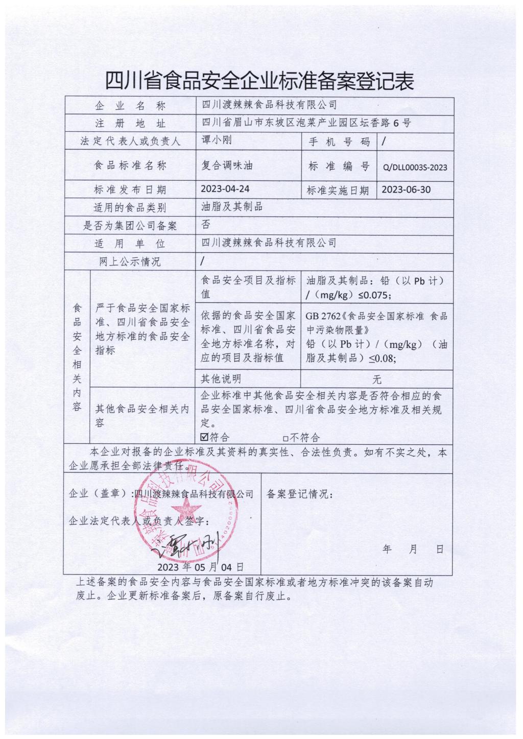 四川渡辣辣食品科技有限公司-复合调味油(公示截止期2023.6.6)