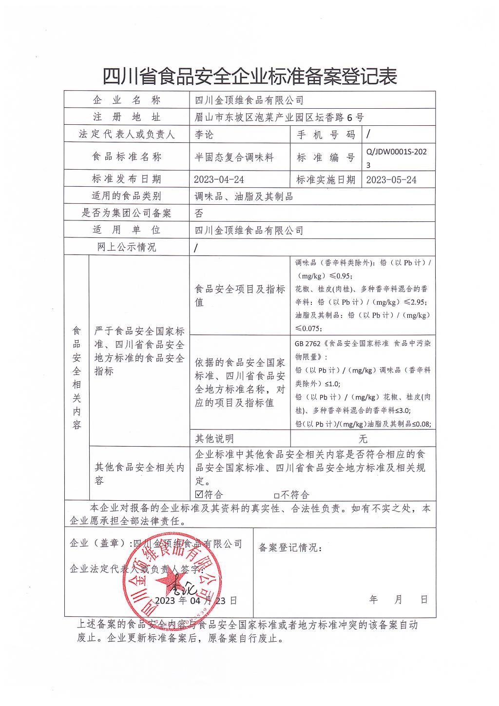 四川金顶维食品有限公司-半固态复合调味料(公示截止期2023.6.6)
