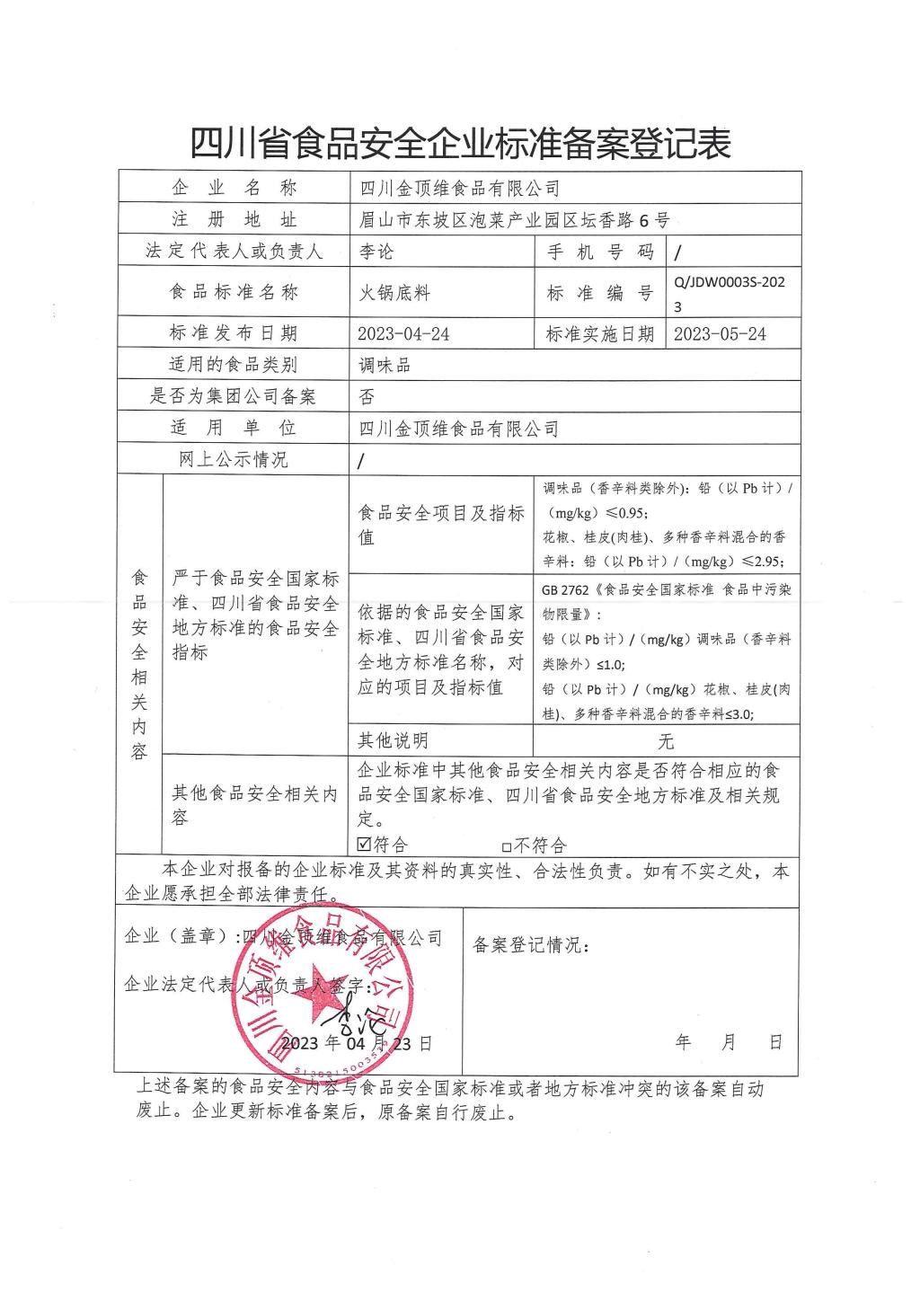 四川金顶维食品有限公司-火锅底料(公示截止期2023.6.6)