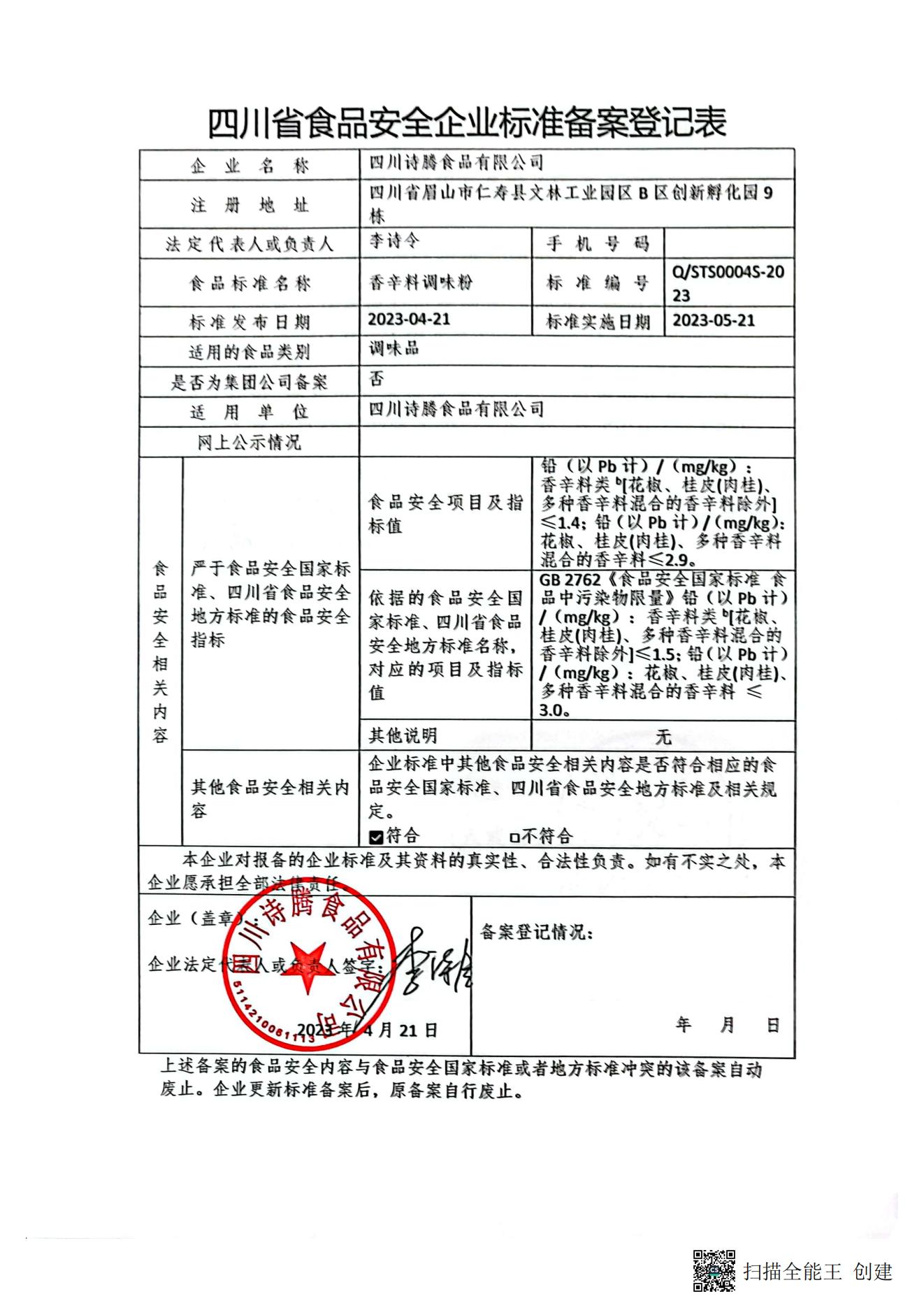 四川诗腾食品有限公司-香辛料调味粉(公示截止期2023.6.6)