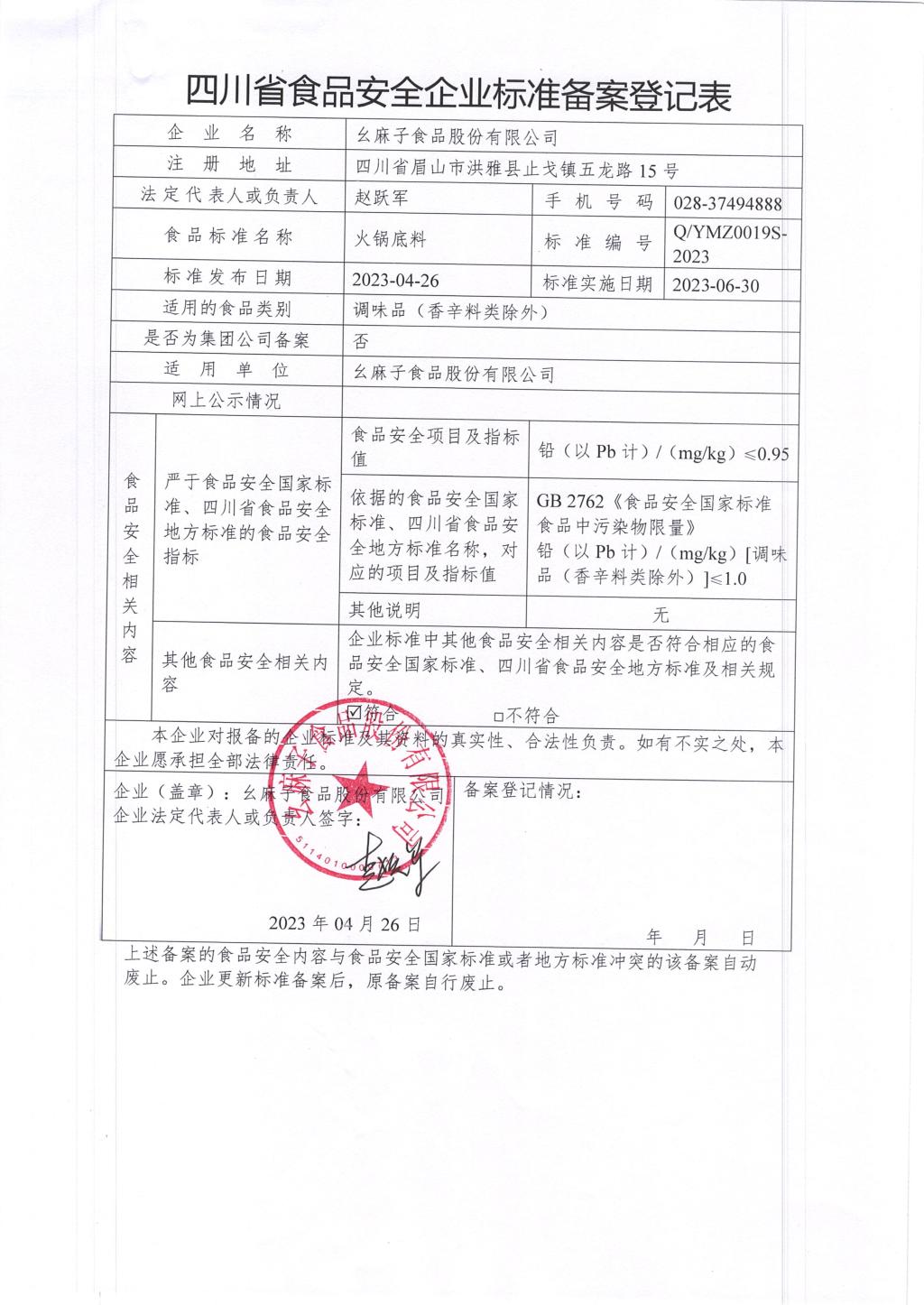 幺麻子食品股份有限公司-火锅底料(公示截止期2023.6.6)