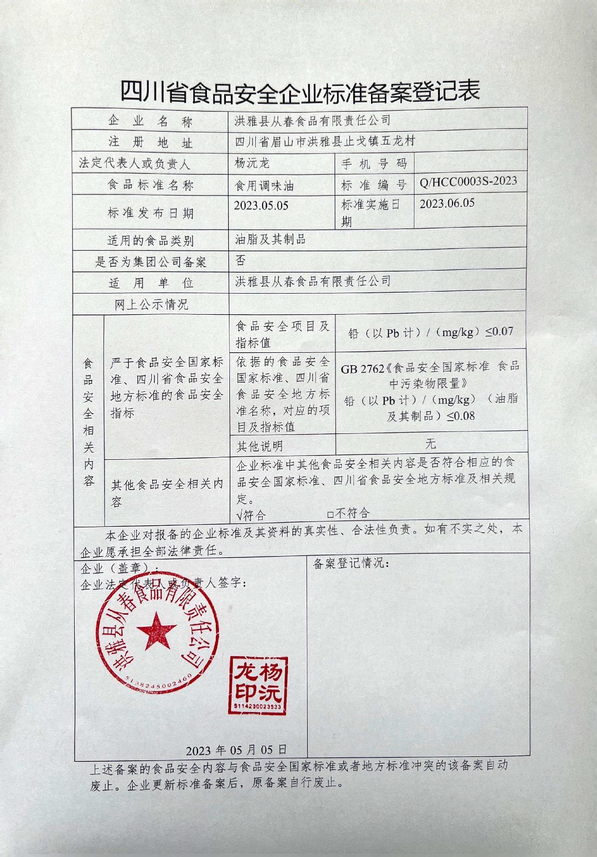 洪雅县从春食品有限责任公司-食用调味油(公示截止期2023.6.12)