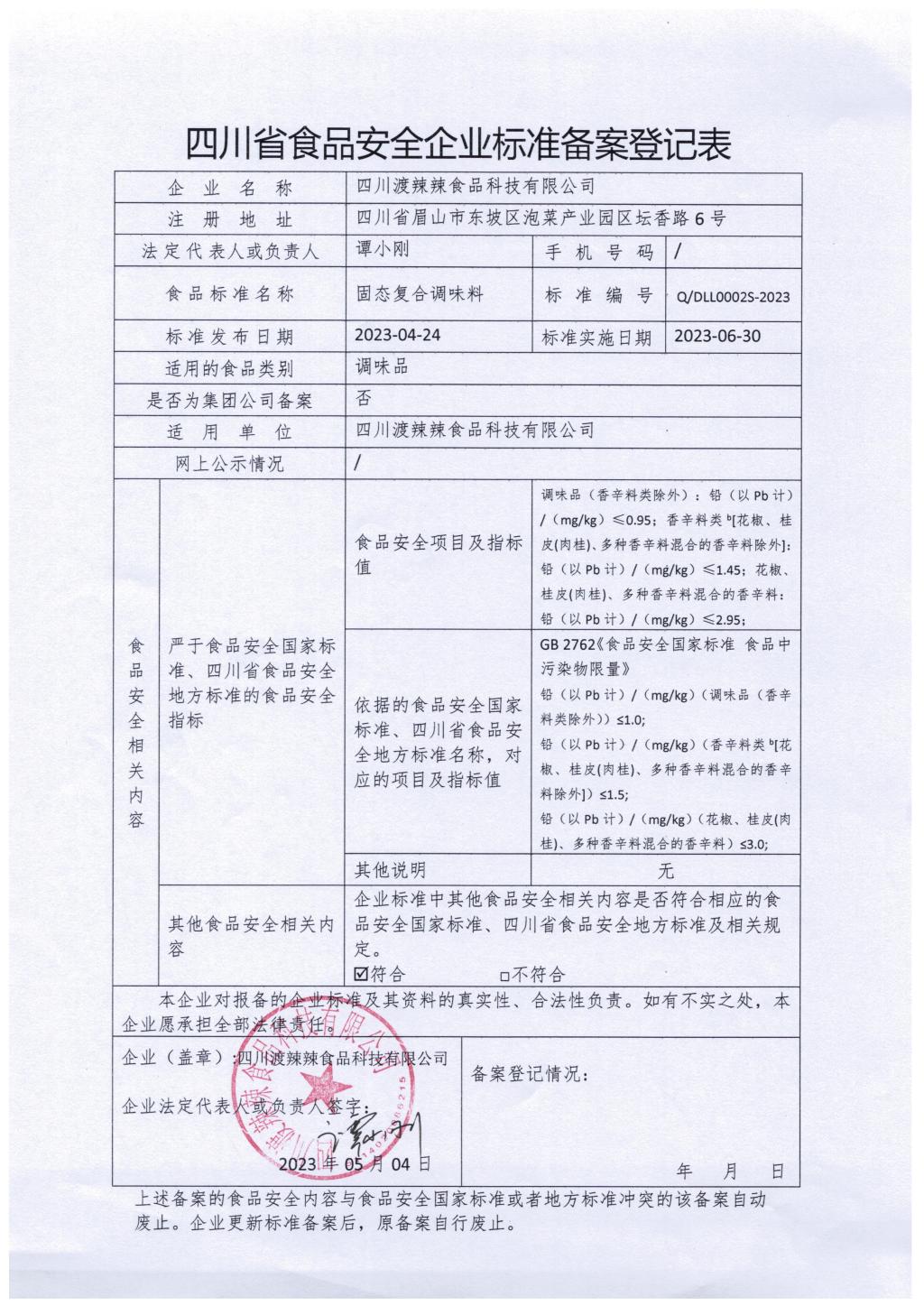 四川渡辣辣食品科技有限公司-固态复合调味料(公示截止期2023.6.12)