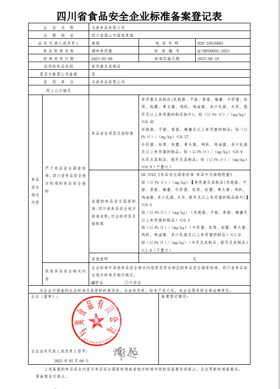 与美食品有限公司-调味食用菌(公示截止期2023.6.12)