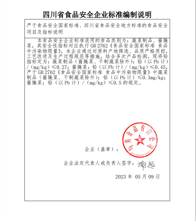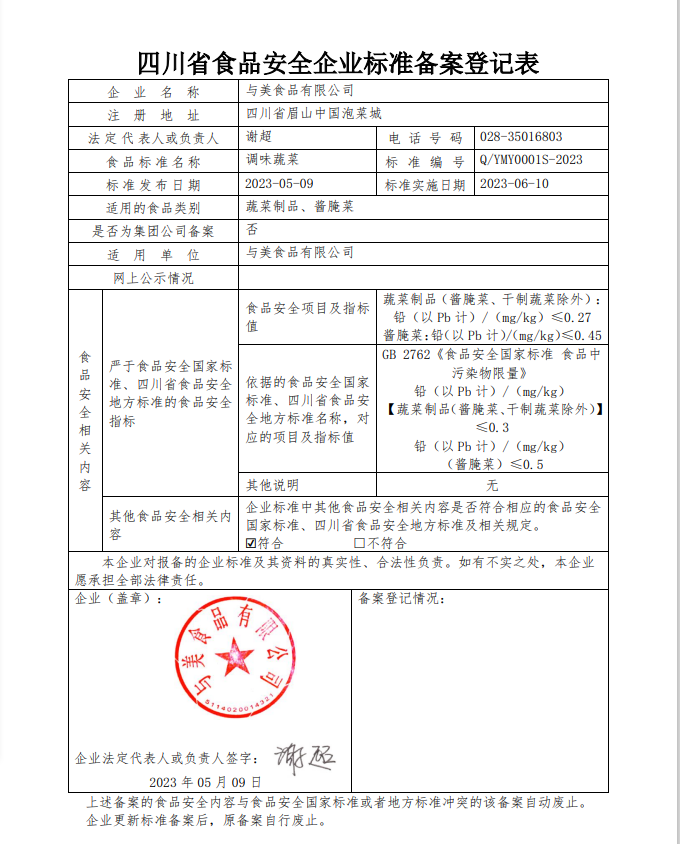 与美食品有限公司-调味蔬菜(公示截止期2023.6.12)