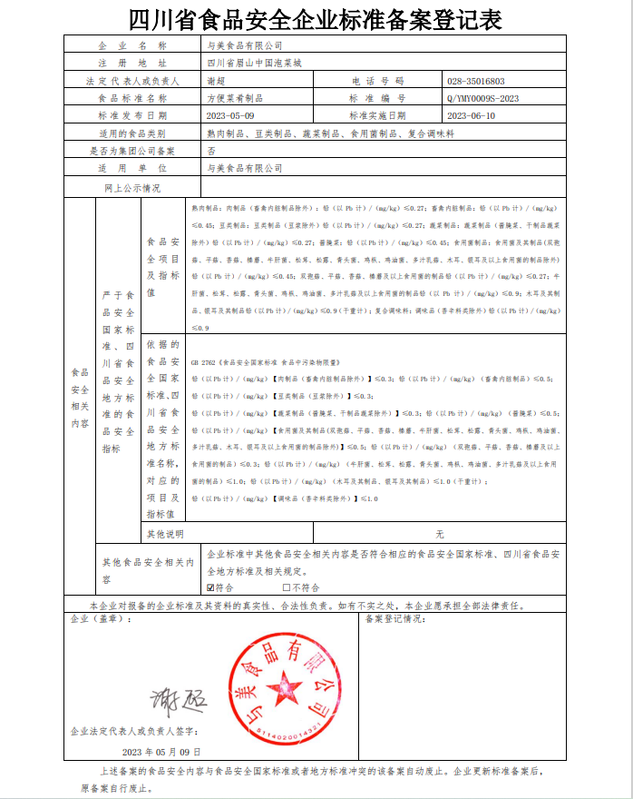 与美食品有限公司-方便菜肴制品(公示截止期2023.6.12)