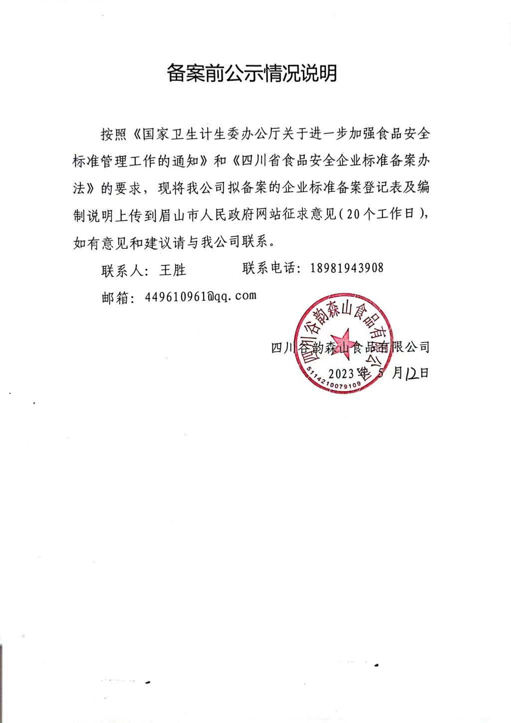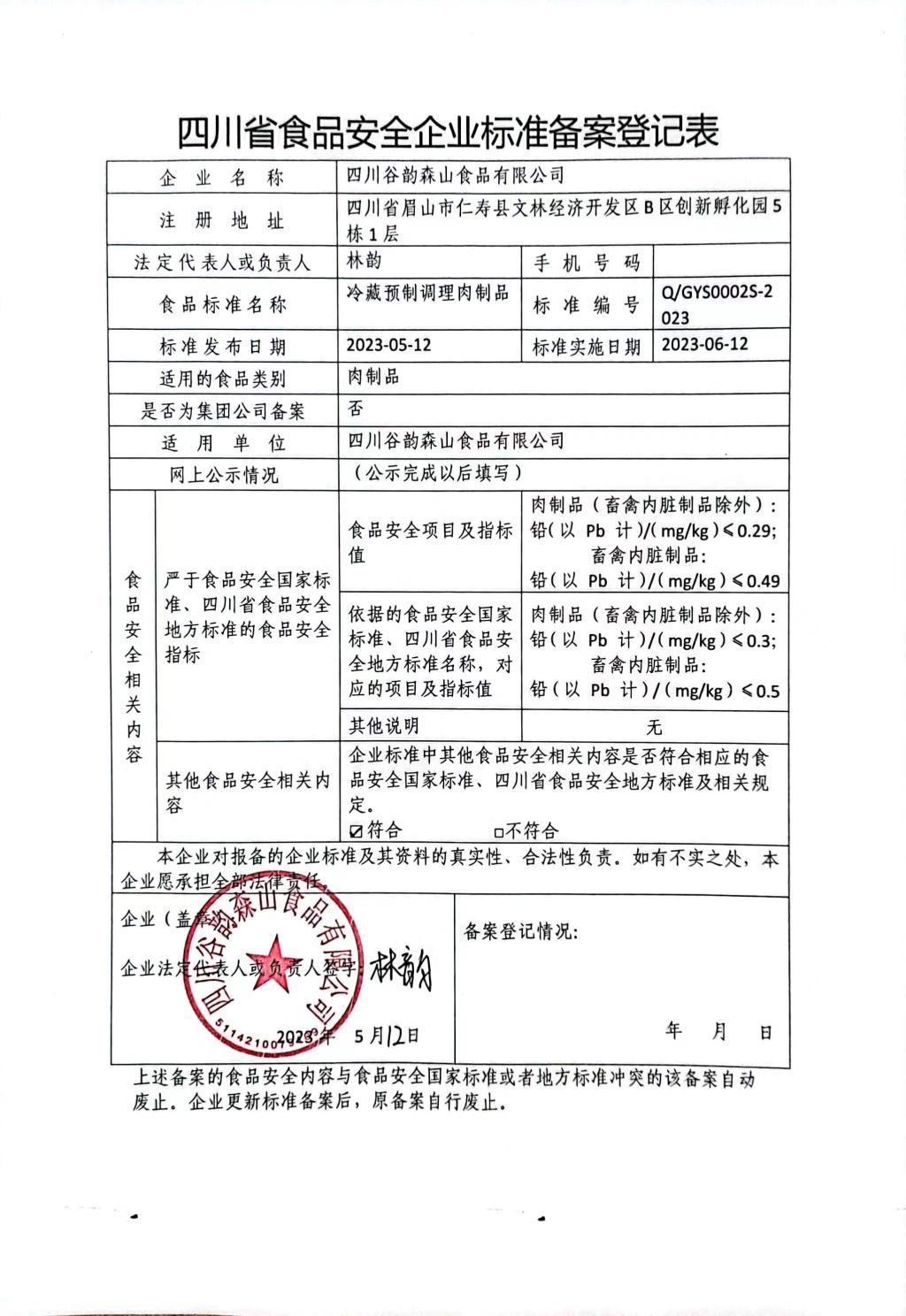 四川谷韵森山食品有限公司-冷藏预制调理肉制品(公示截止期2023.6.13)