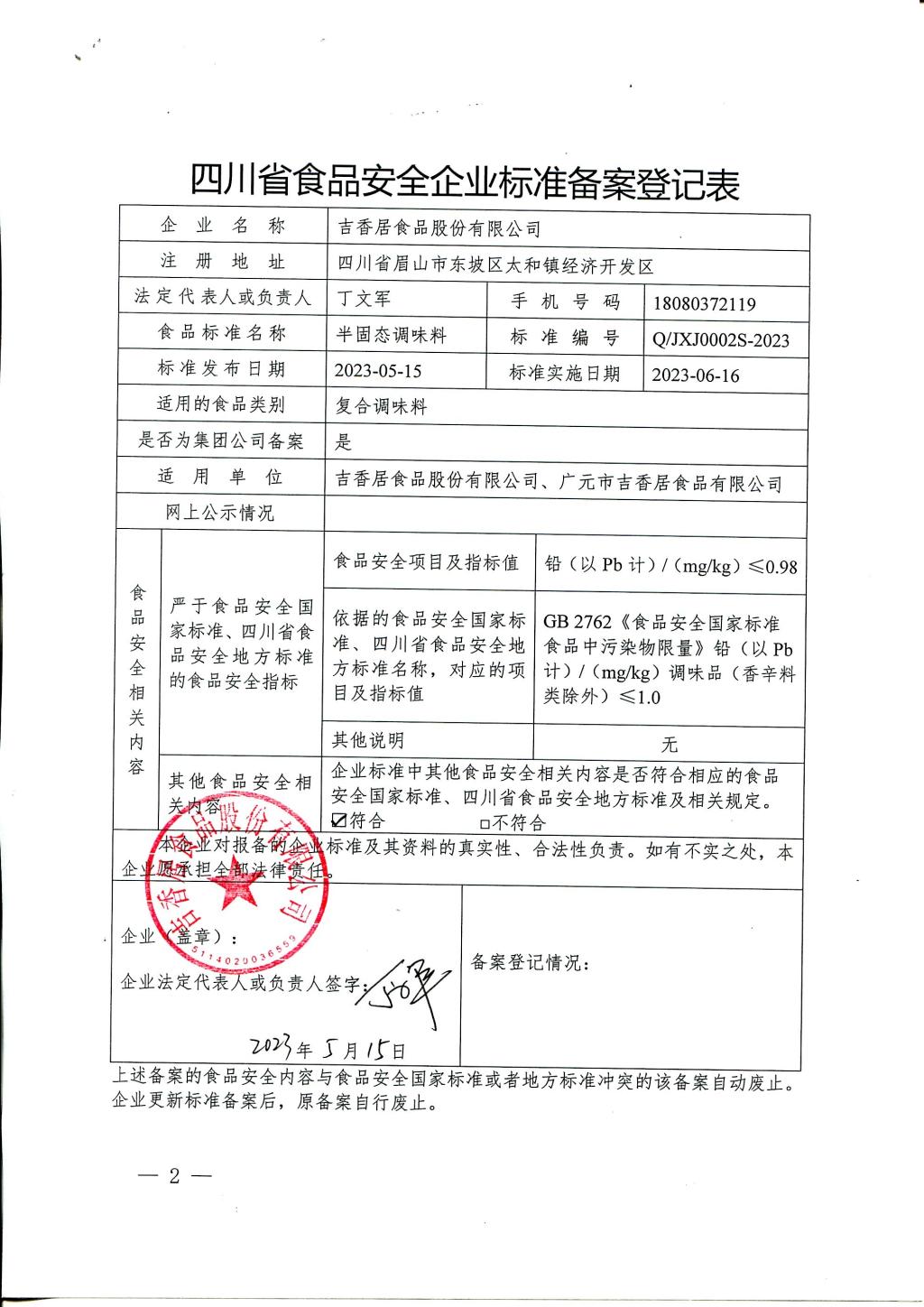 吉香居食品股份有限公司-半固态调味料(公示截止日期2023.6.19)
