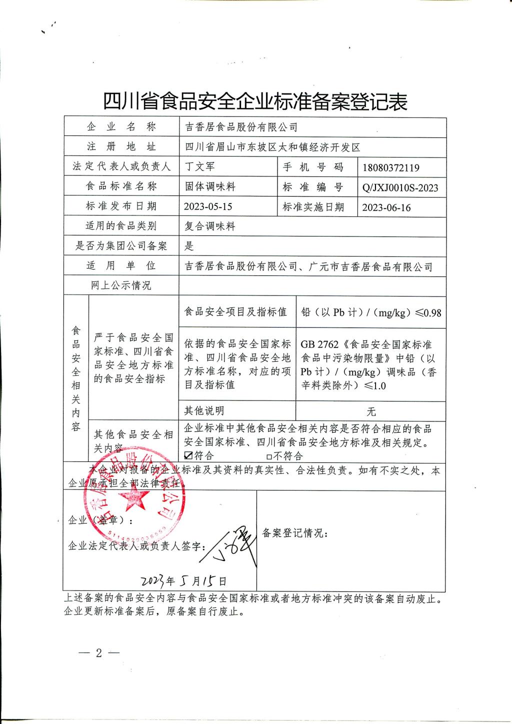 吉香居食品股份有限公司-固体调味料(公示截止日期2023.6.19)