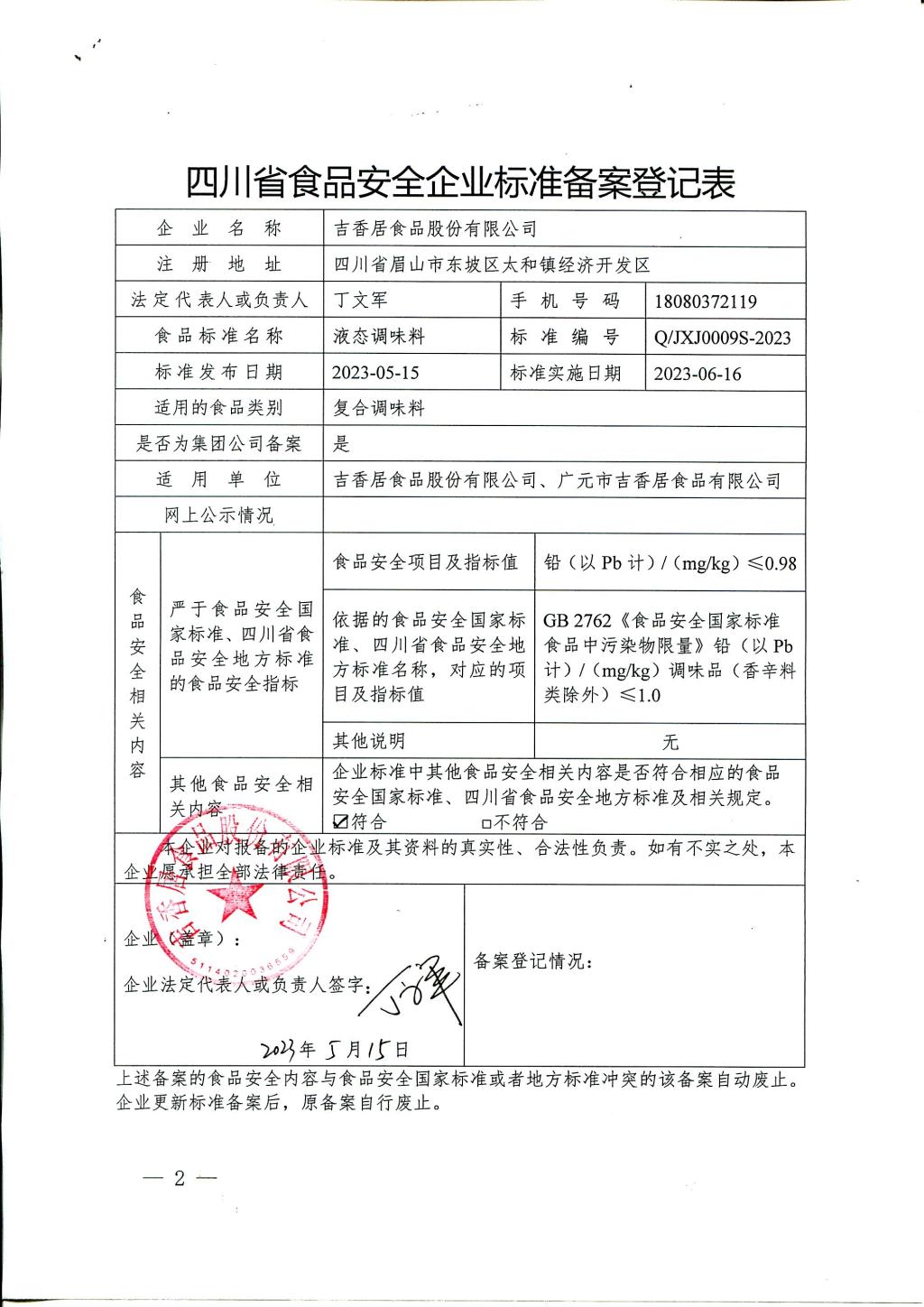 吉香居食品股份有限公司-液态调味料(公示截止日期2023.6.19)
