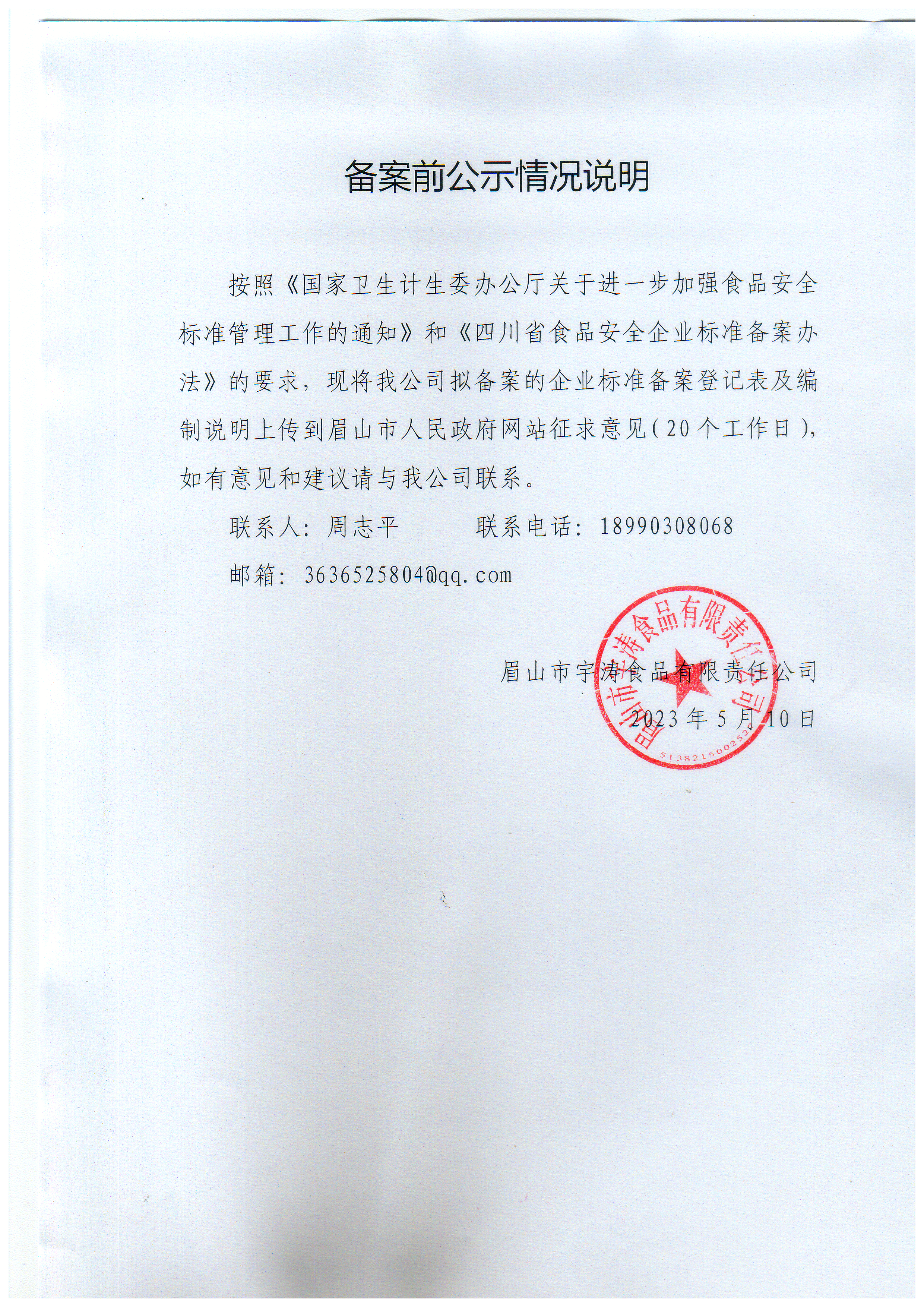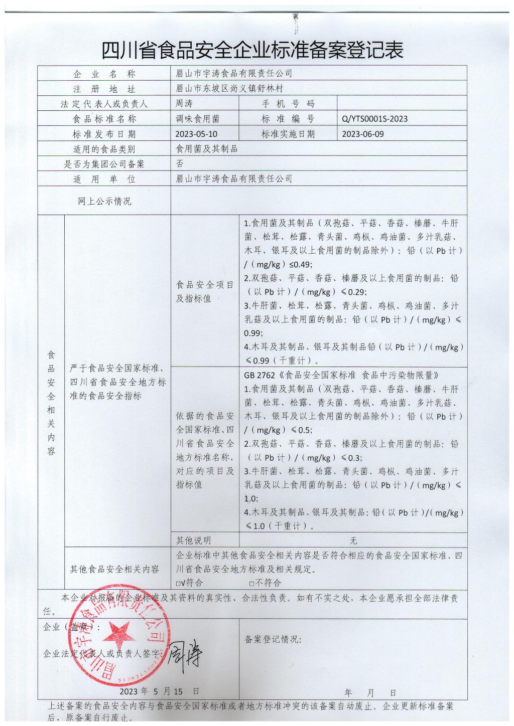 眉山市宇涛食品有限责任公司-调味食用菌(公示截止日期2023.6.19)