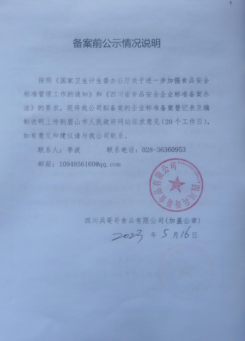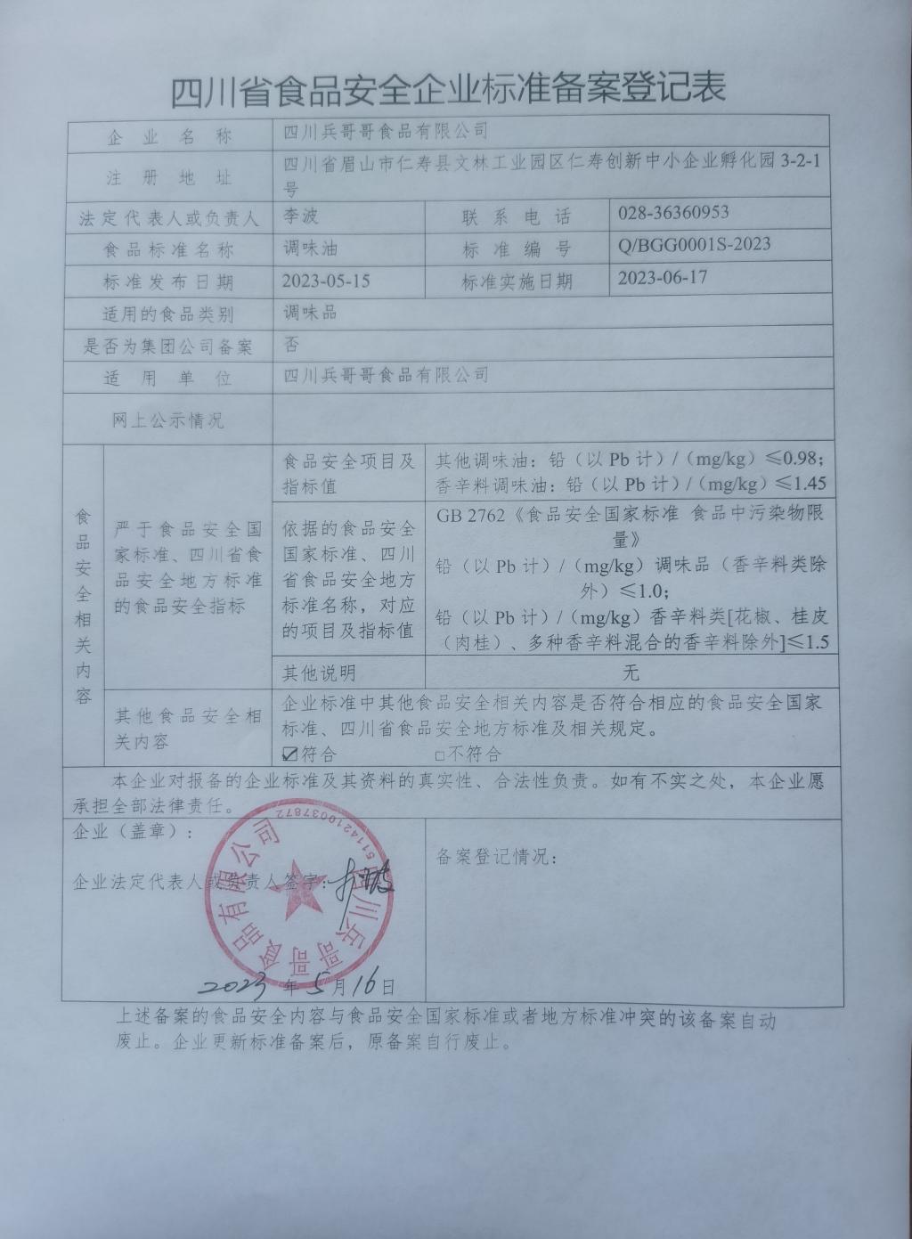 四川兵哥哥食品有限公司-调味油(公示截止日期2023.6.19)