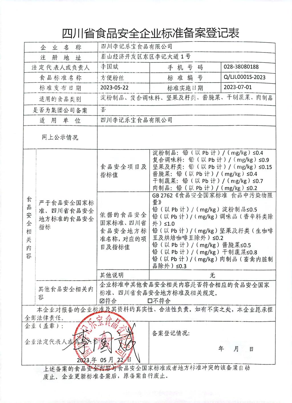 四川李记乐宝食品有限公司-方便粉丝(公示截止期2023.6.26)