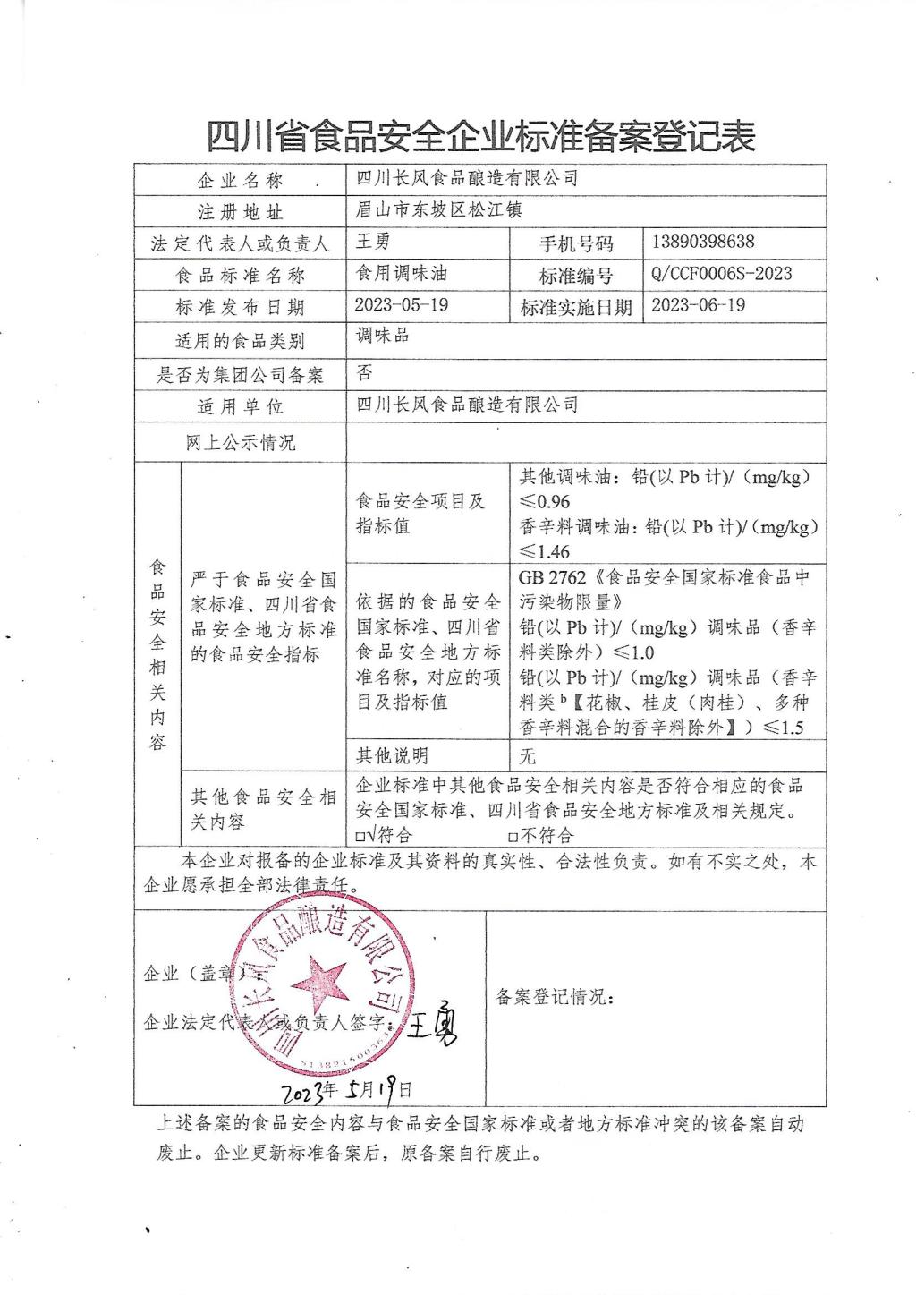 四川长风食品酿造有限公司-食用调味油(公示截止期2023.6.26)