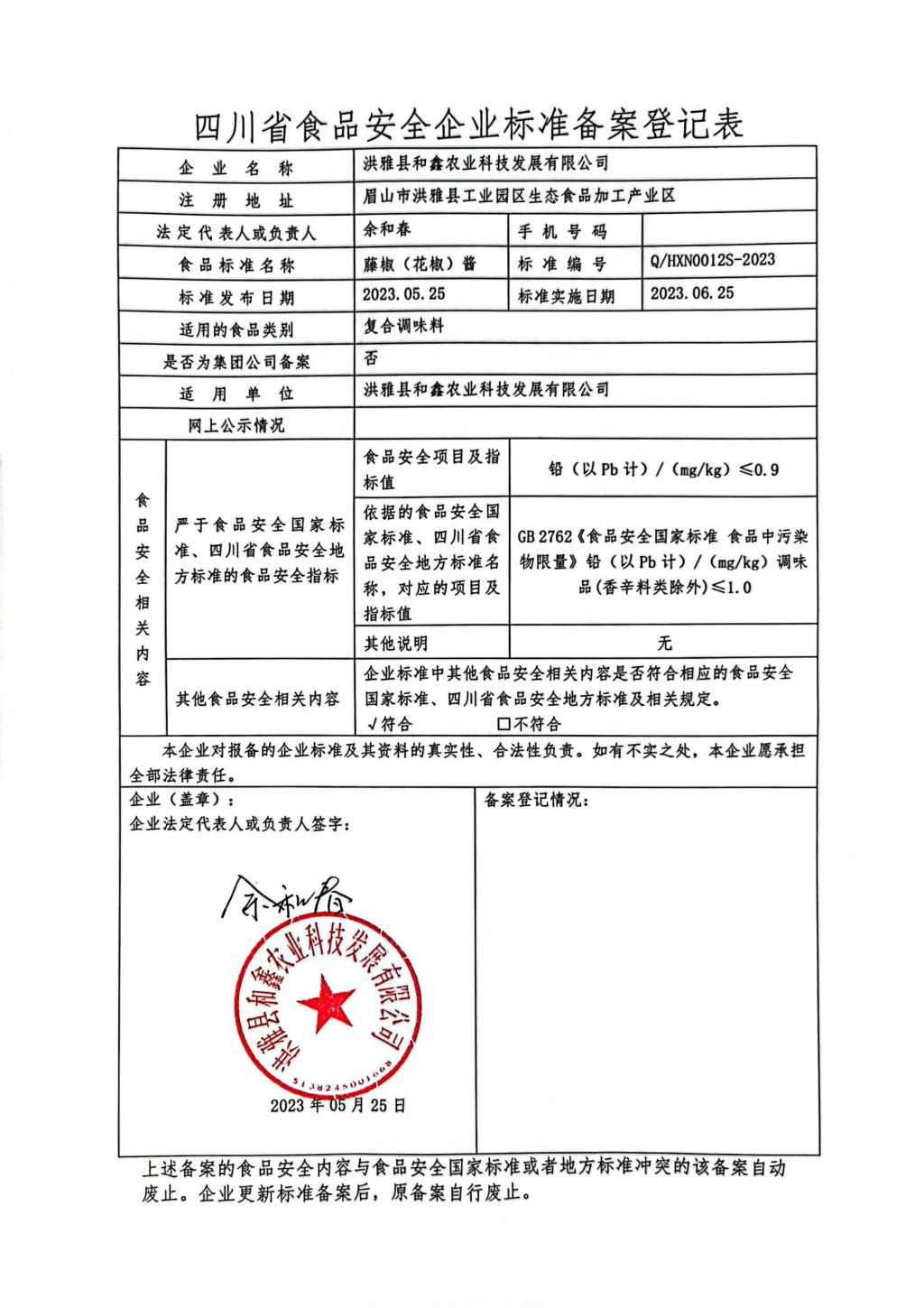 洪雅县和鑫农业科技发展有限公司-藤椒(花椒)酱(公示截止期2023.7.11)