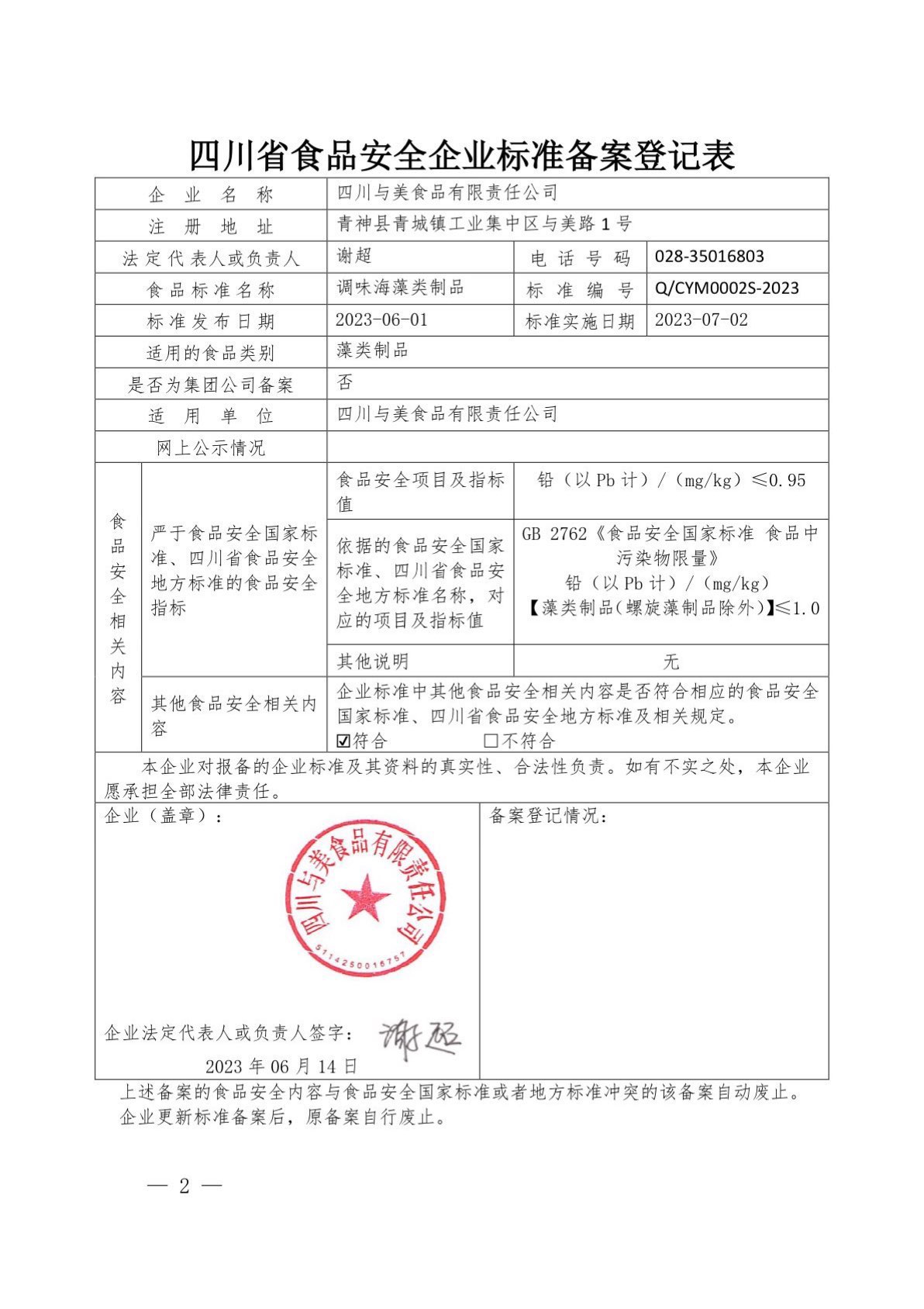 四川与美食品有限责任公司-调味海藻类制品(公示截止期2023.7.18)