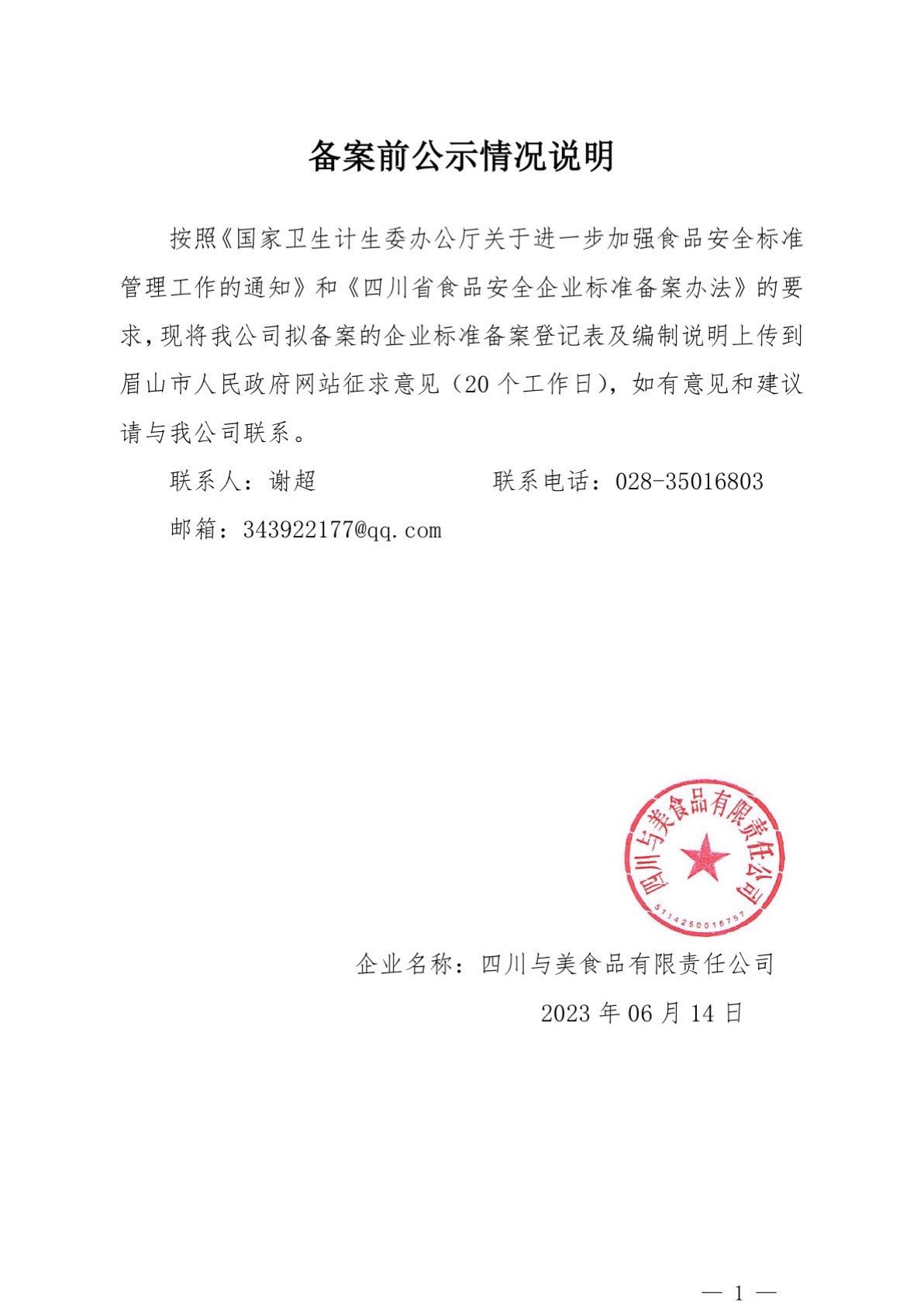 四川与美食品有限责任公司-调味魔芋制品(公示截止期2023.7.18)
