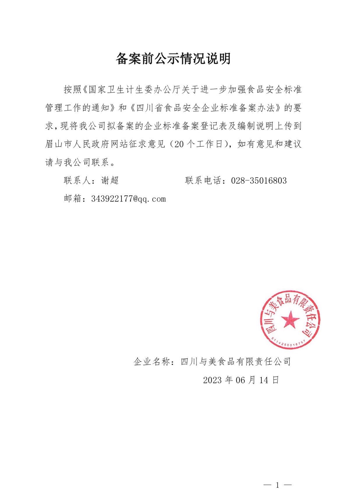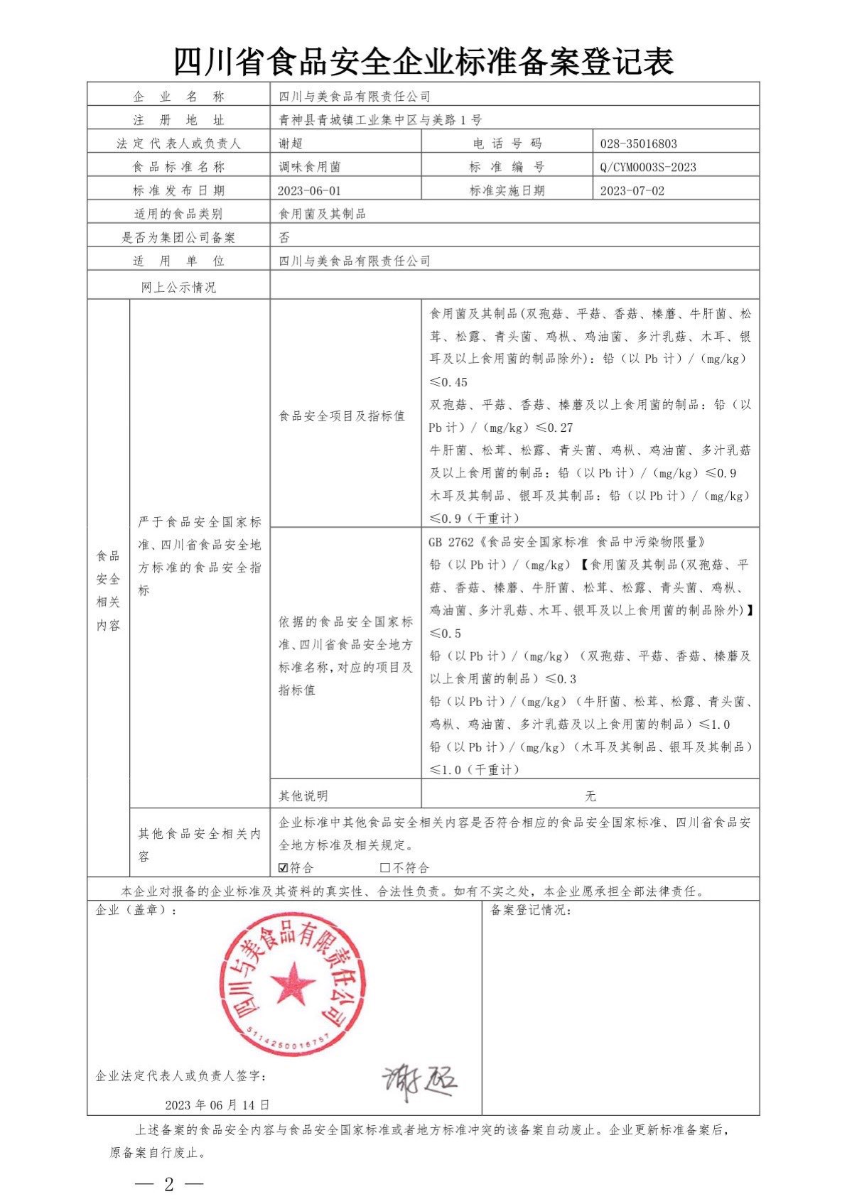 四川与美食品有限责任公司-调味食用菌(公示截止期2023.7.18)