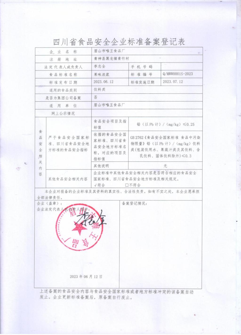 眉山市唯王食品厂-果味浓浆(公示截止期2023.7.25)