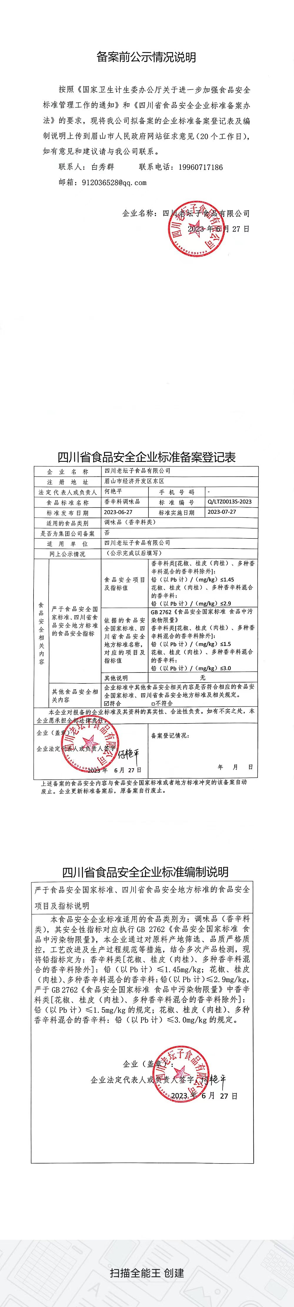 四川老坛子食品有限公司--香辛料调味品(公示截止期2023.7.31)